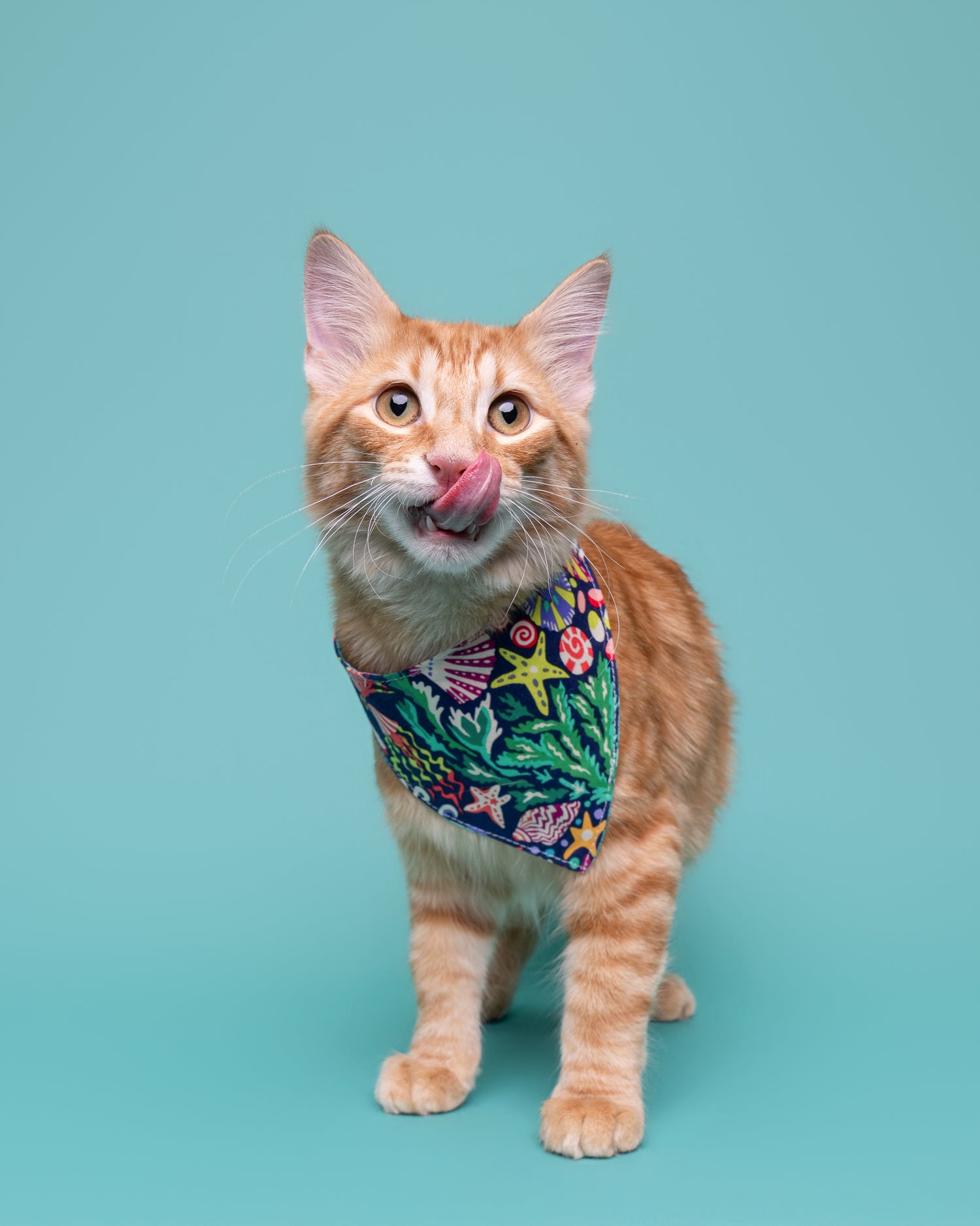 Cat doesn’t wear a collar for my over collar bandanas, no problem!...