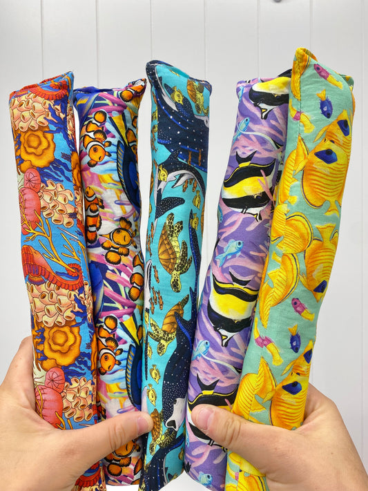 I got the large size for my little boy and he loves it!! Lots of teeth marks to prove it. Many, many thanks to the seller, who kindly took my fabric print request even though they didn’t have to :) Eggo loves the breakfast print!