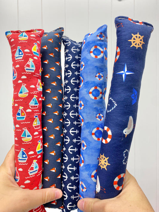 I got the large size for my little boy and he loves it!! Lots of teeth marks to prove it. Many, many thanks to the seller, who kindly took my fabric print request even though they didn’t have to :) Eggo loves the breakfast print!