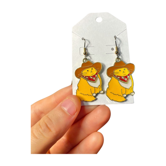 Chubby Cowboy Cat Earrings