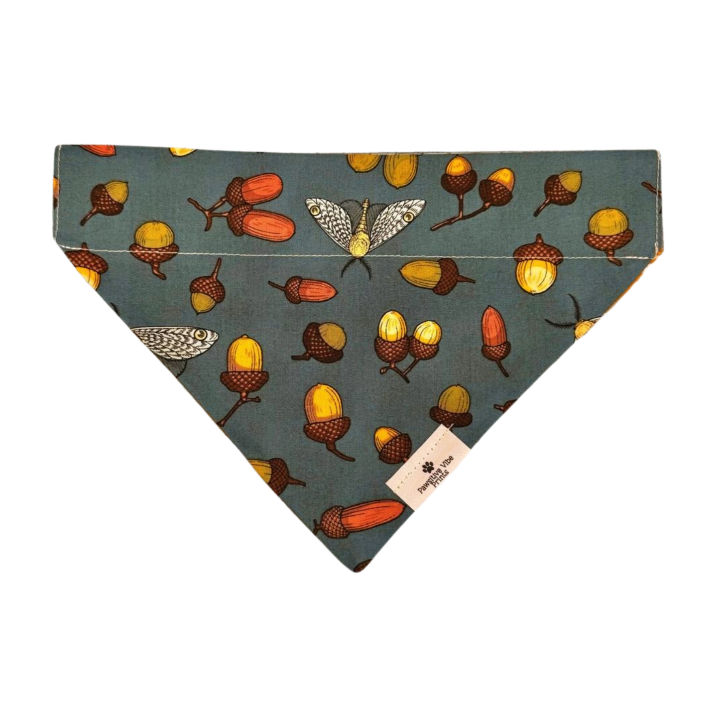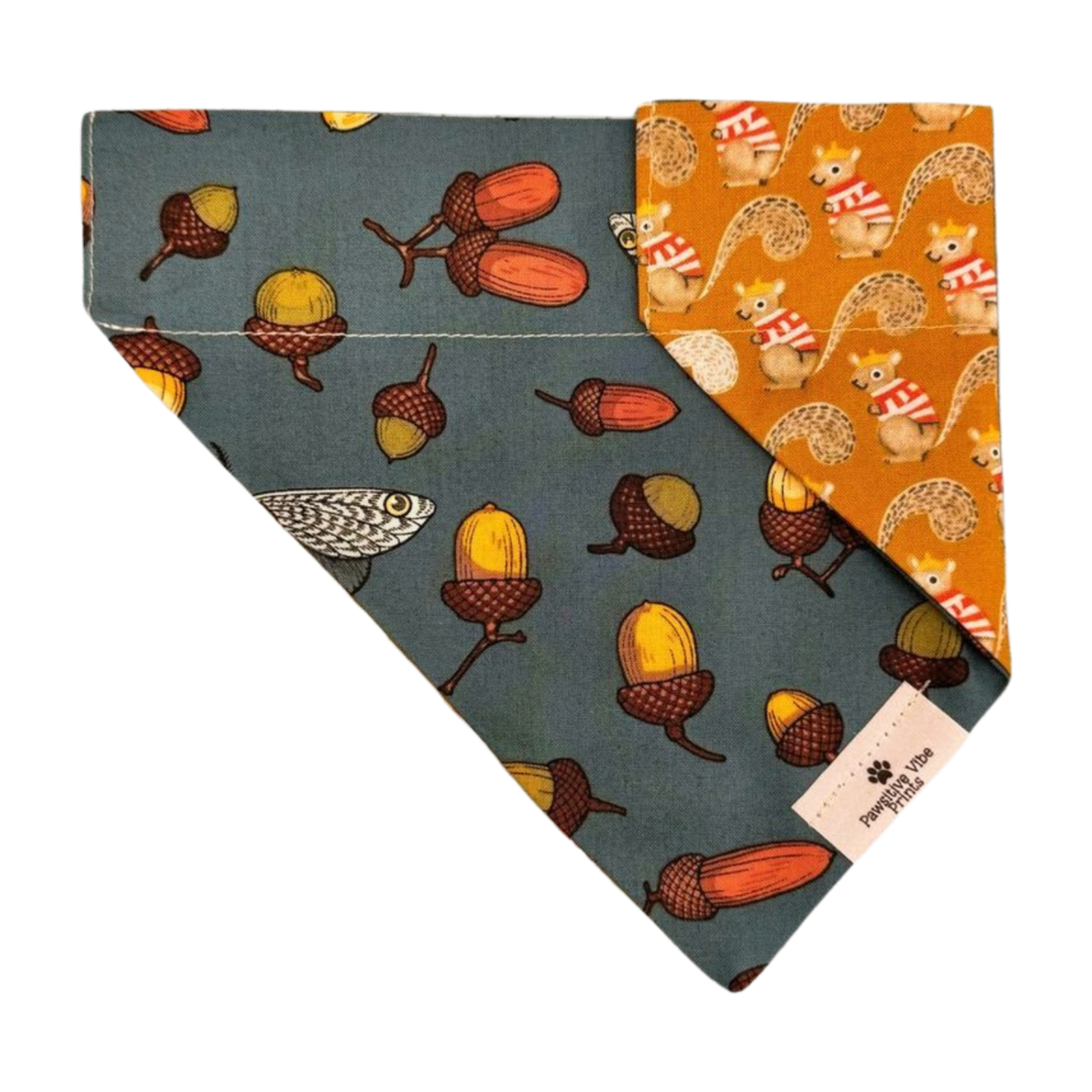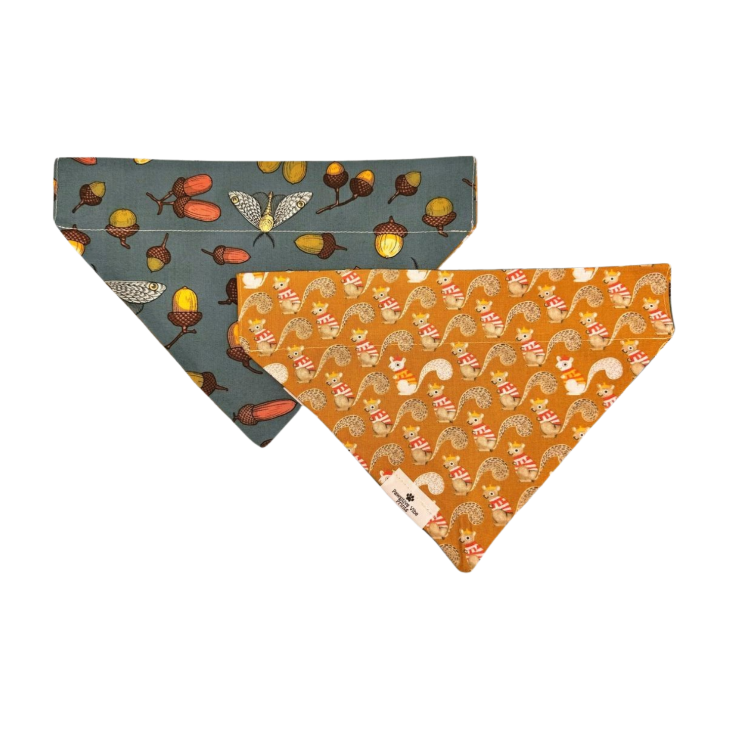 Over the collar design makes it so the bandana stays on as long as the collar is on. This bandana has two prints for the price of one!