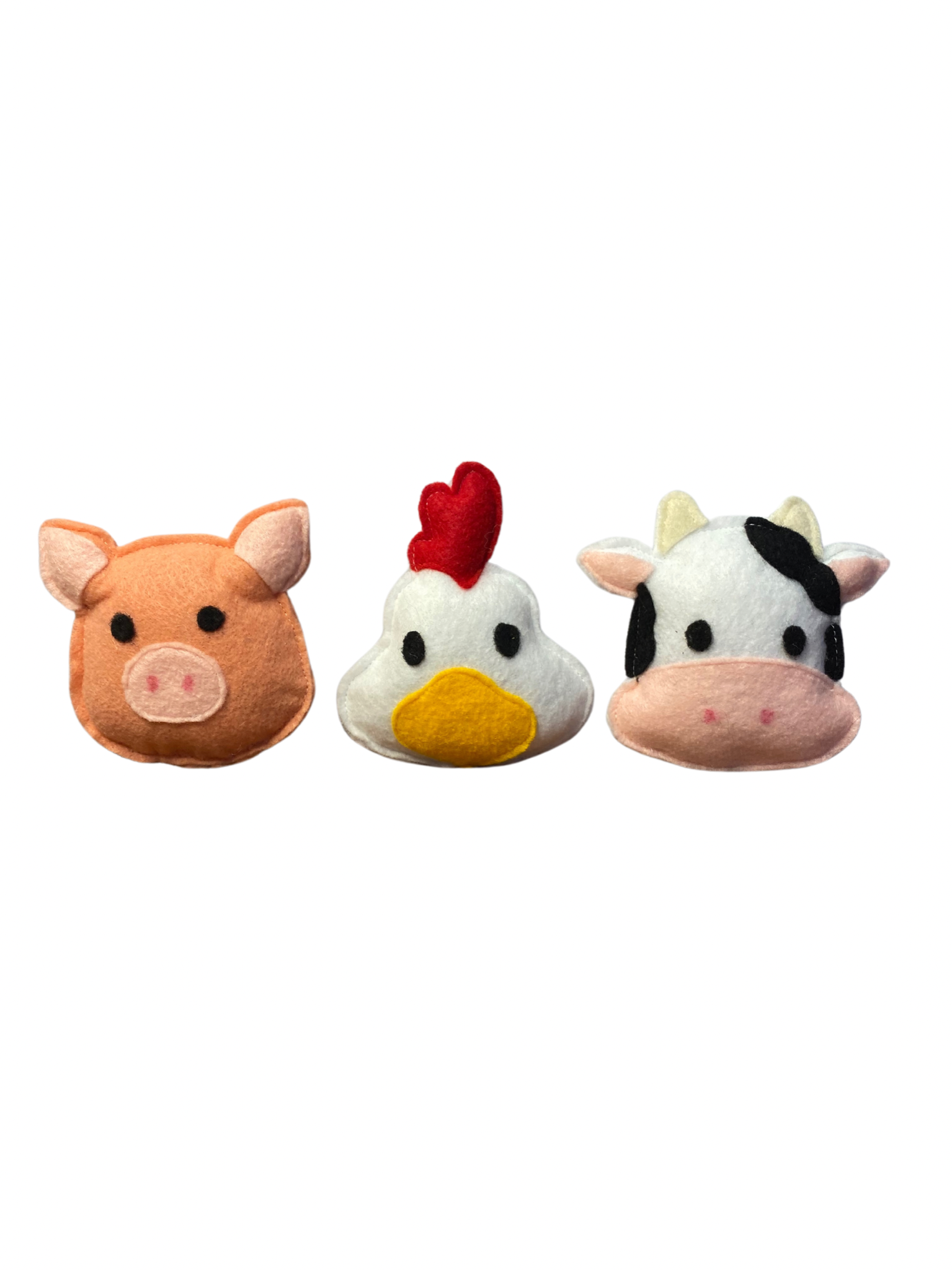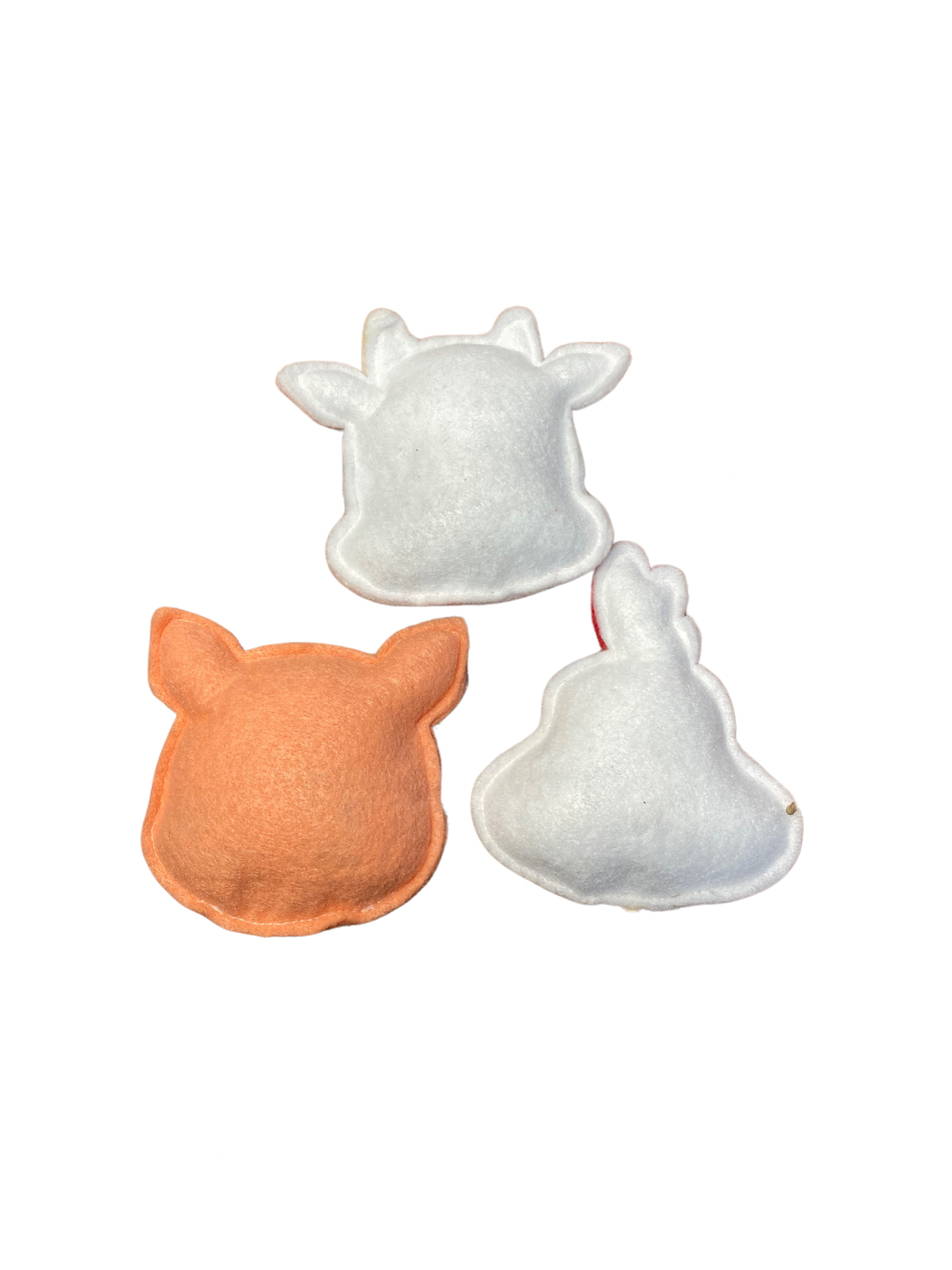 Note**Since these are handmade, there may be small variations in stitching and patterns, but all toys are made from the same kind of felt and thread.