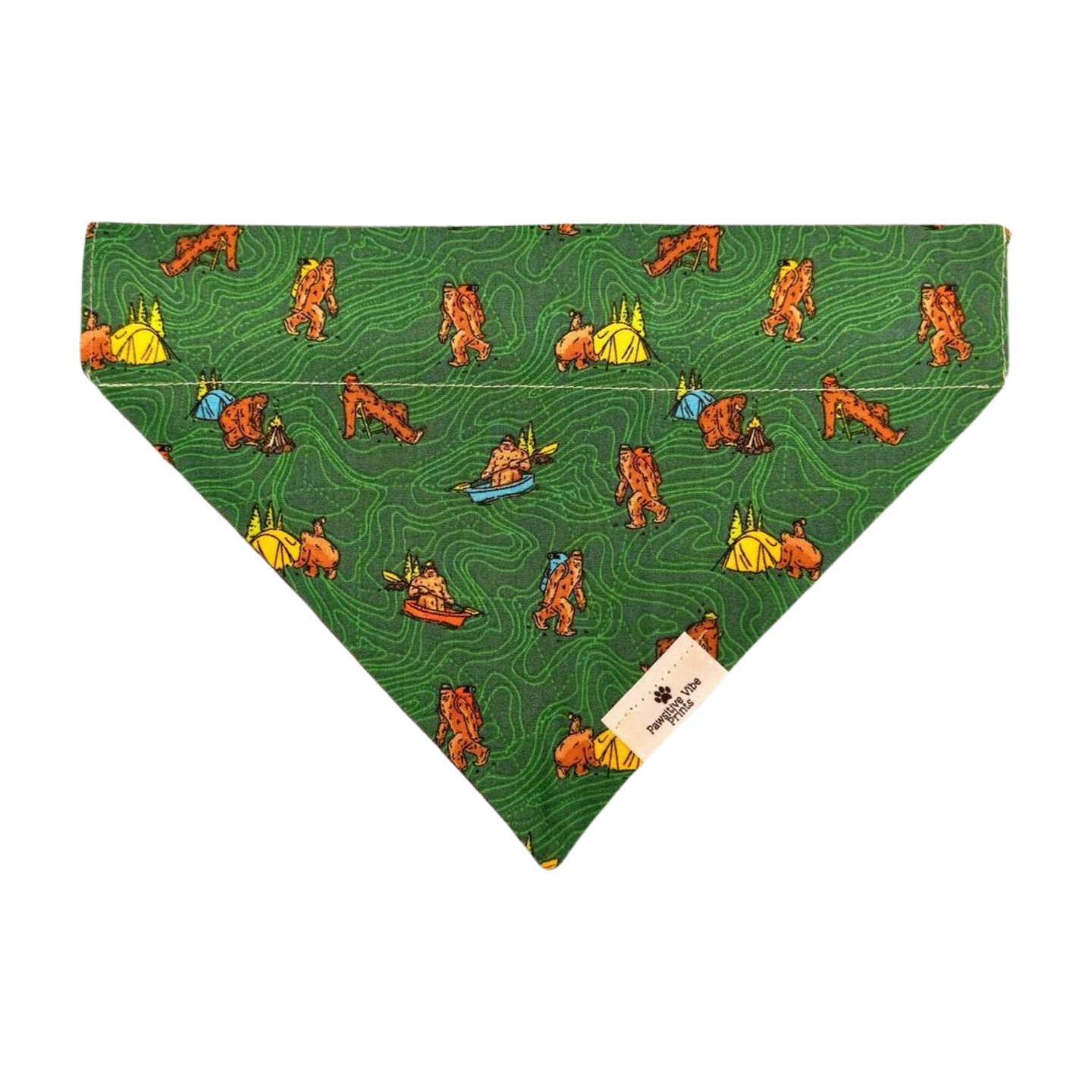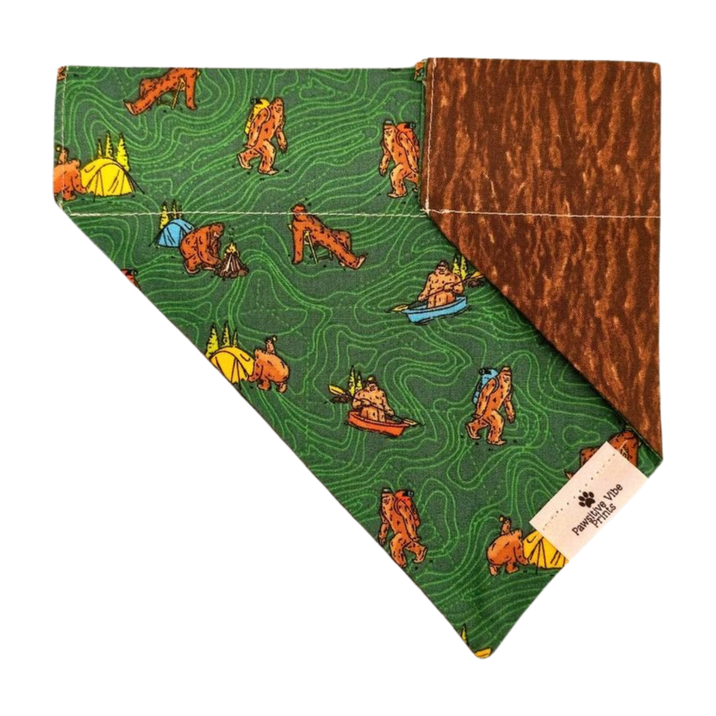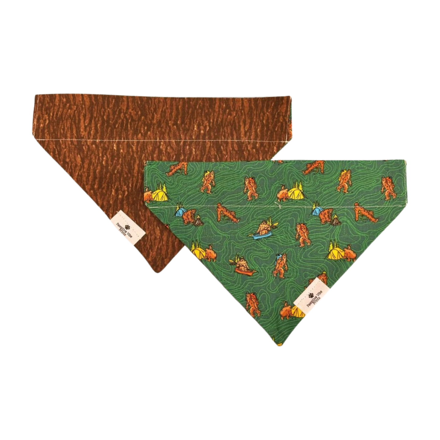 Over the collar design makes it so the bandana stays on as long as the collar is on. This bandana has two prints for the price of one!