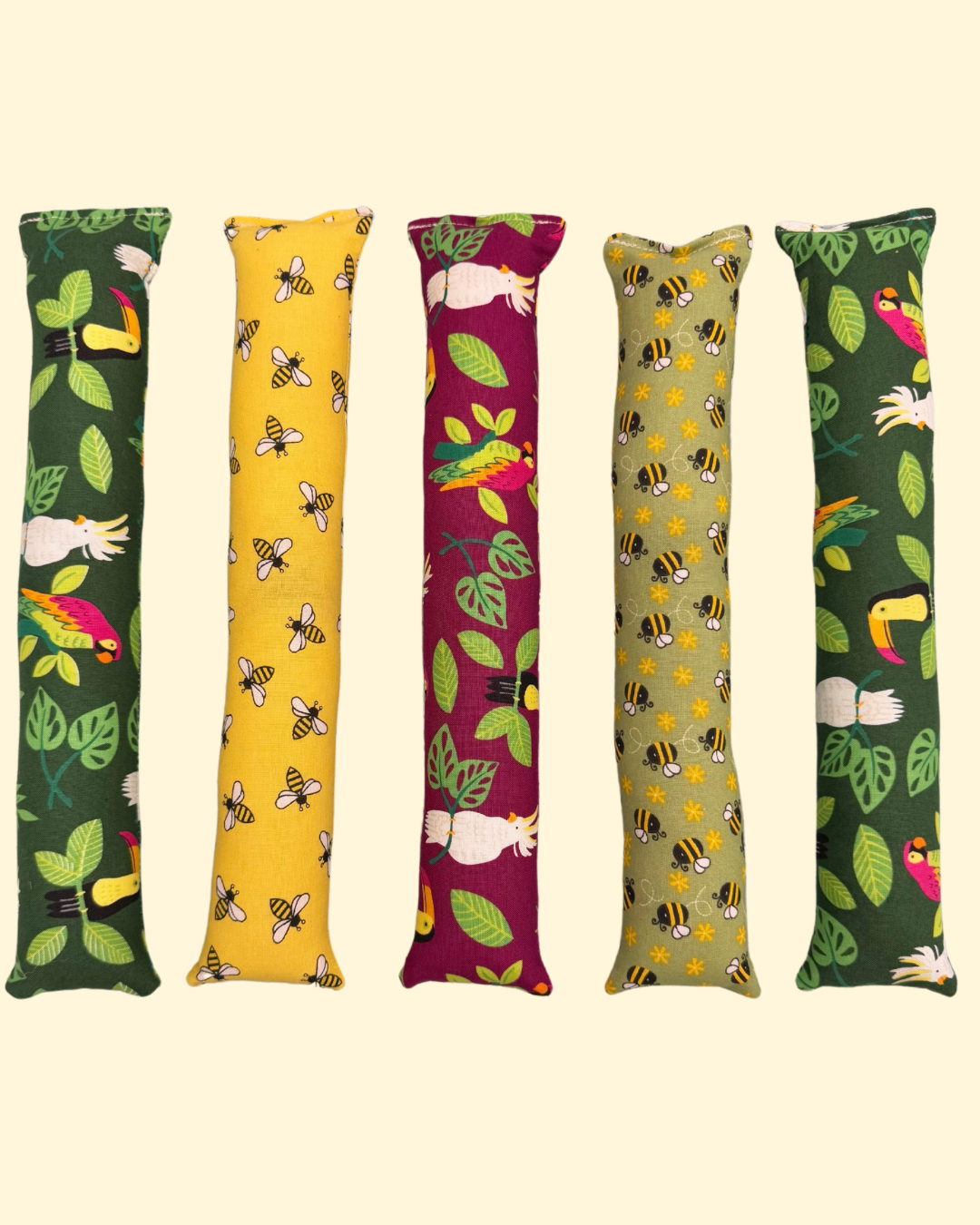 each cat kicker is made from 100% cotton fabric, machine stitched for durability, and filled with stuffing and 3 large scoops of catnip silvervine mixture!