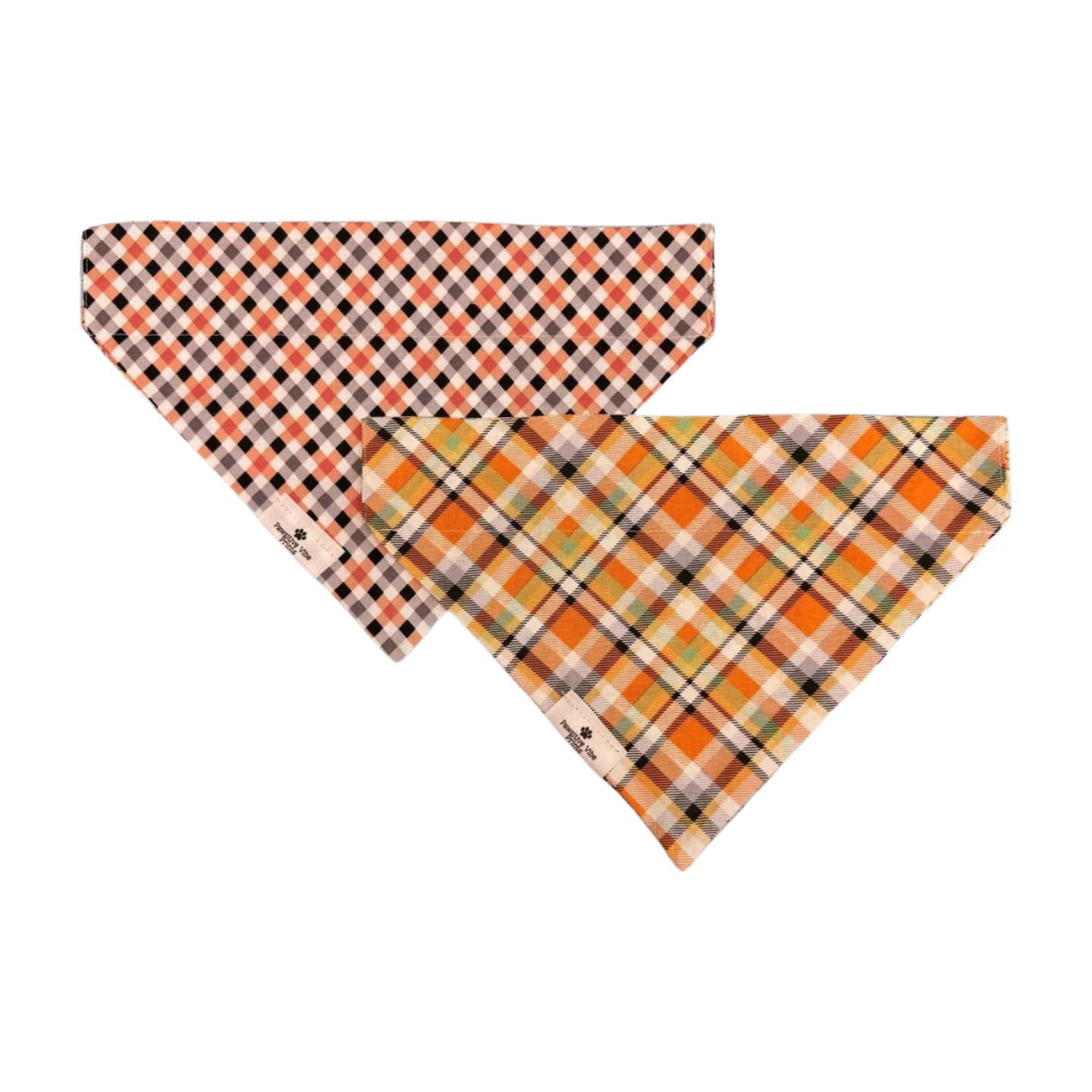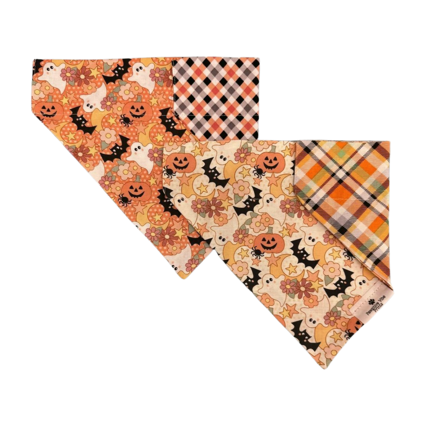 Over the collar design makes it so the bandana stays on as long as the collar is on. This bandana has two prints for the price of one!