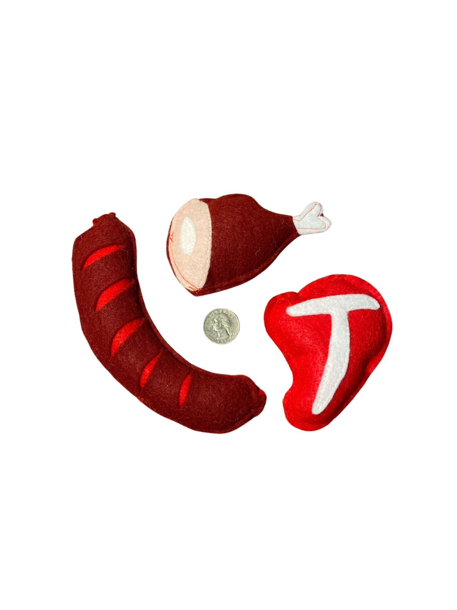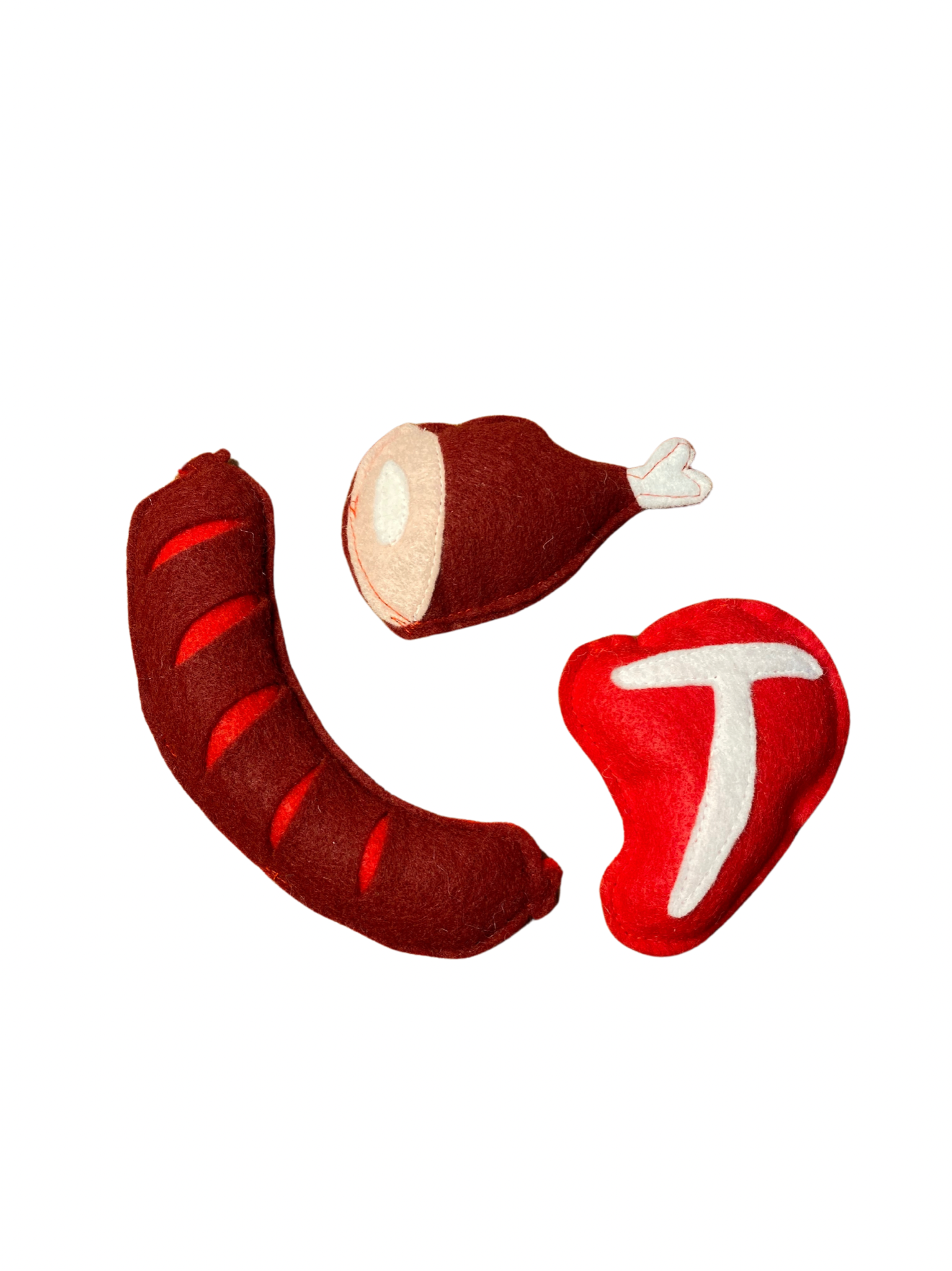 Note**Since these are handmade, there may be small variations in stitching and patterns, but all toys are made from the same kind of felt and thread.