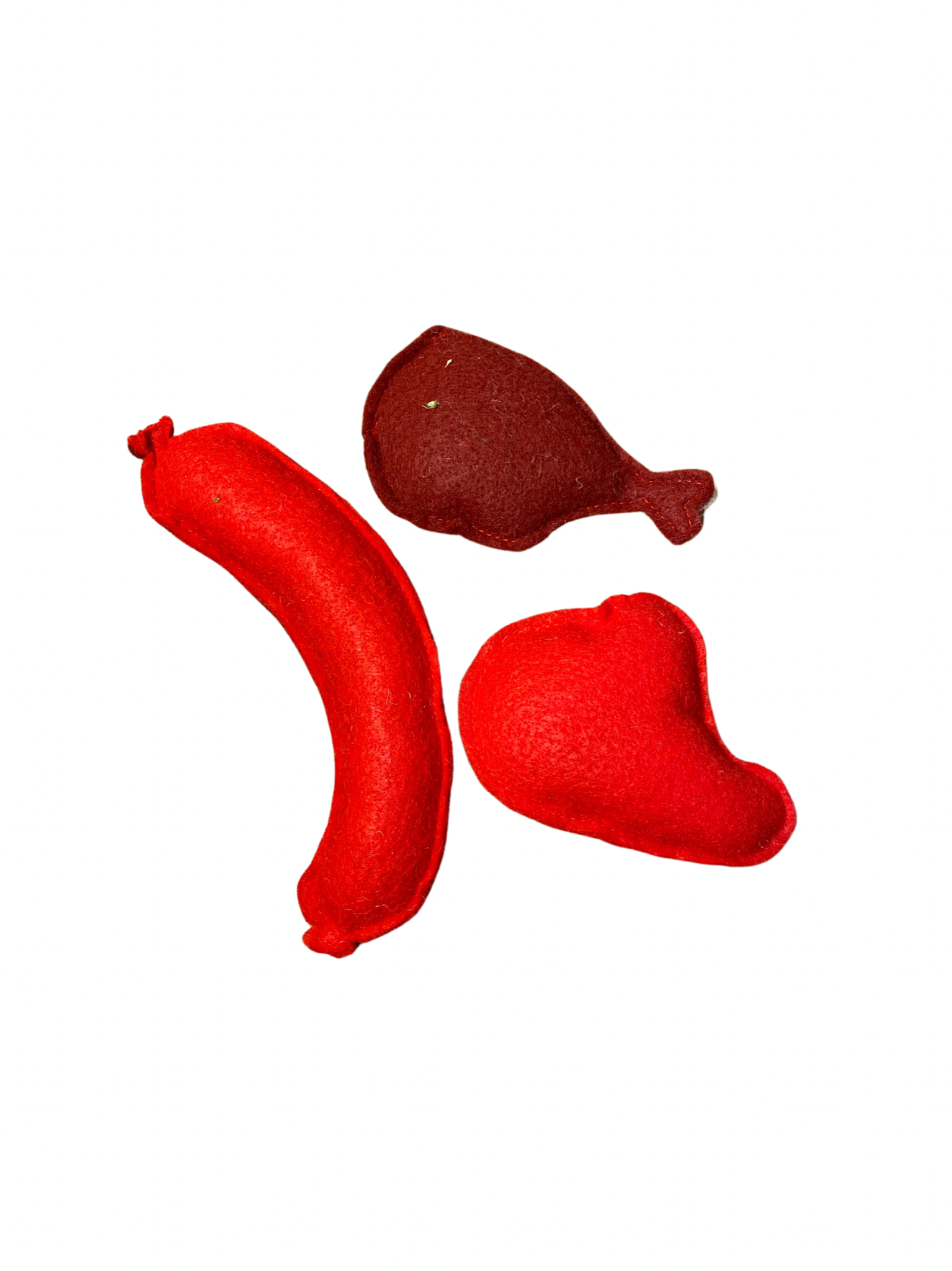 • made from felt, and filled with polyfil stuffing and catnip/ silver-vine mix
