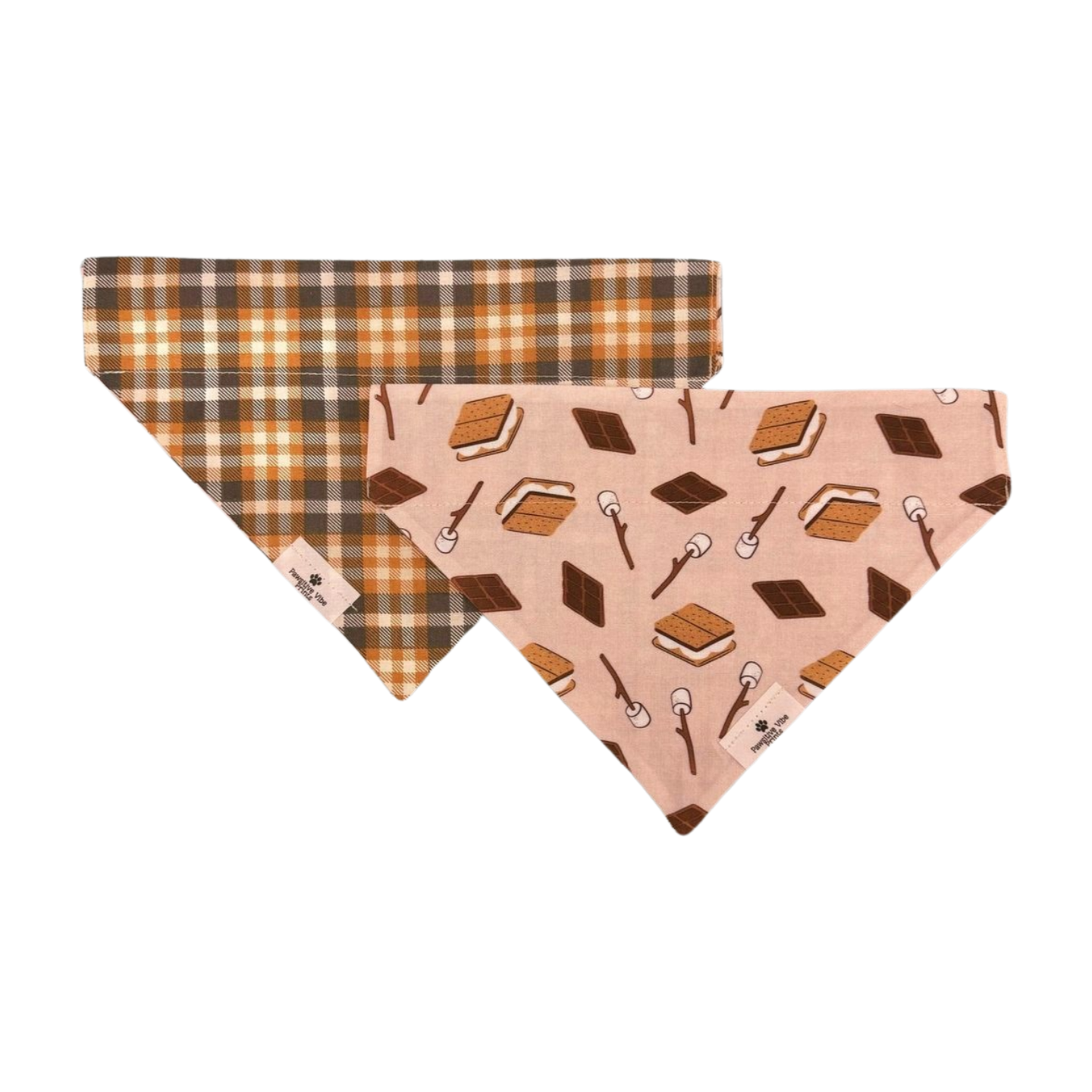 Over the collar design makes it so the bandana stays on as long as the collar is on. This bandana has two prints for the price of one!
