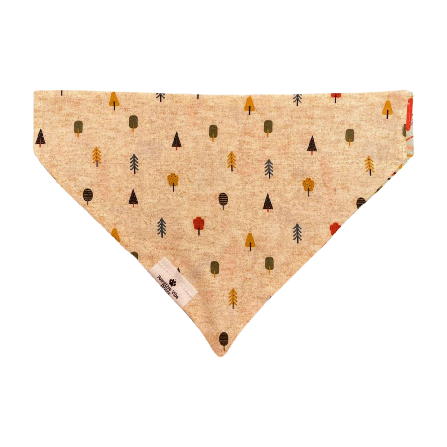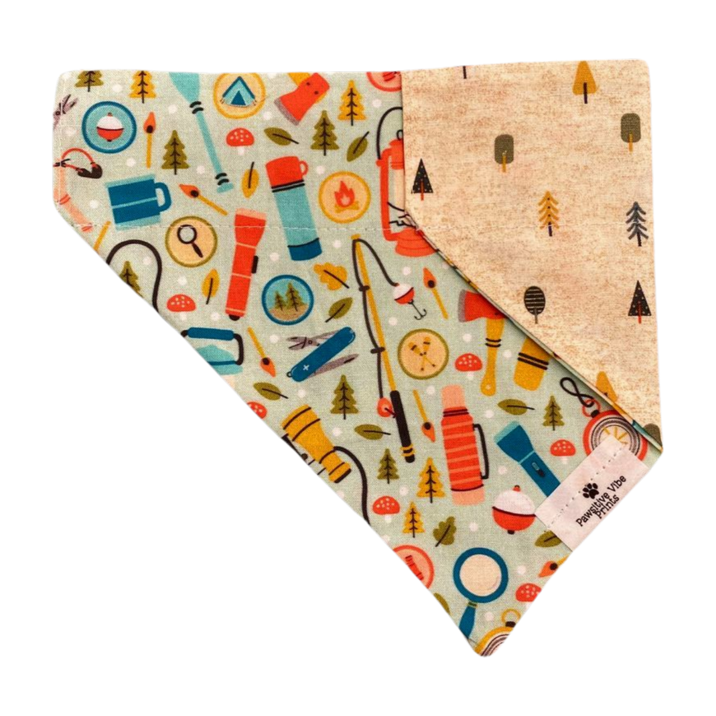 Over the collar design makes it so the bandana stays on as long as the collar is on. This bandana has two prints for the price of one!