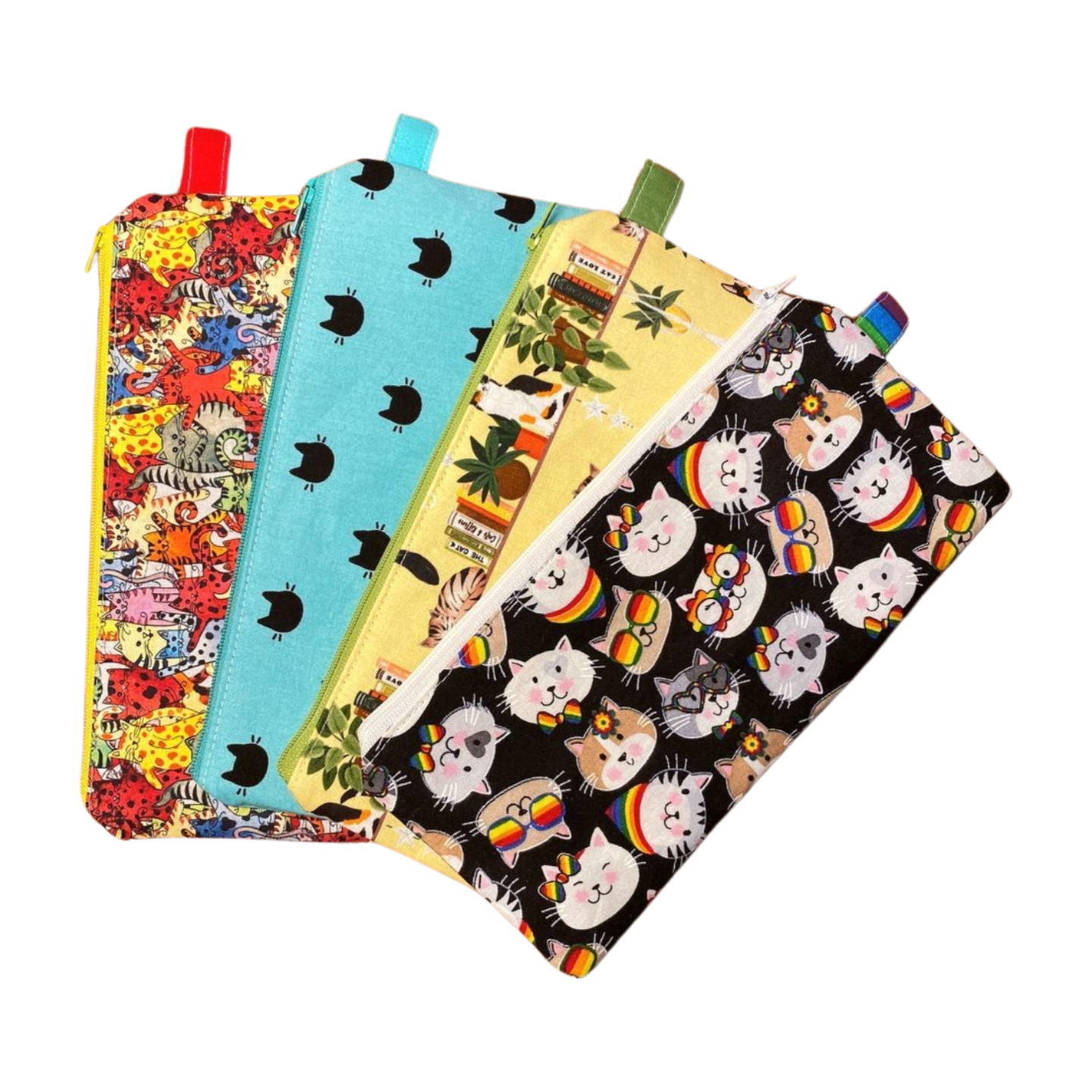 these cute zipper pouches are pawfect for any pet lover! Each pouch is made from high quality cotton fabric with interfacing for a stiff but soft outside. Each pouch is lined with a coordinating cotton fabric.