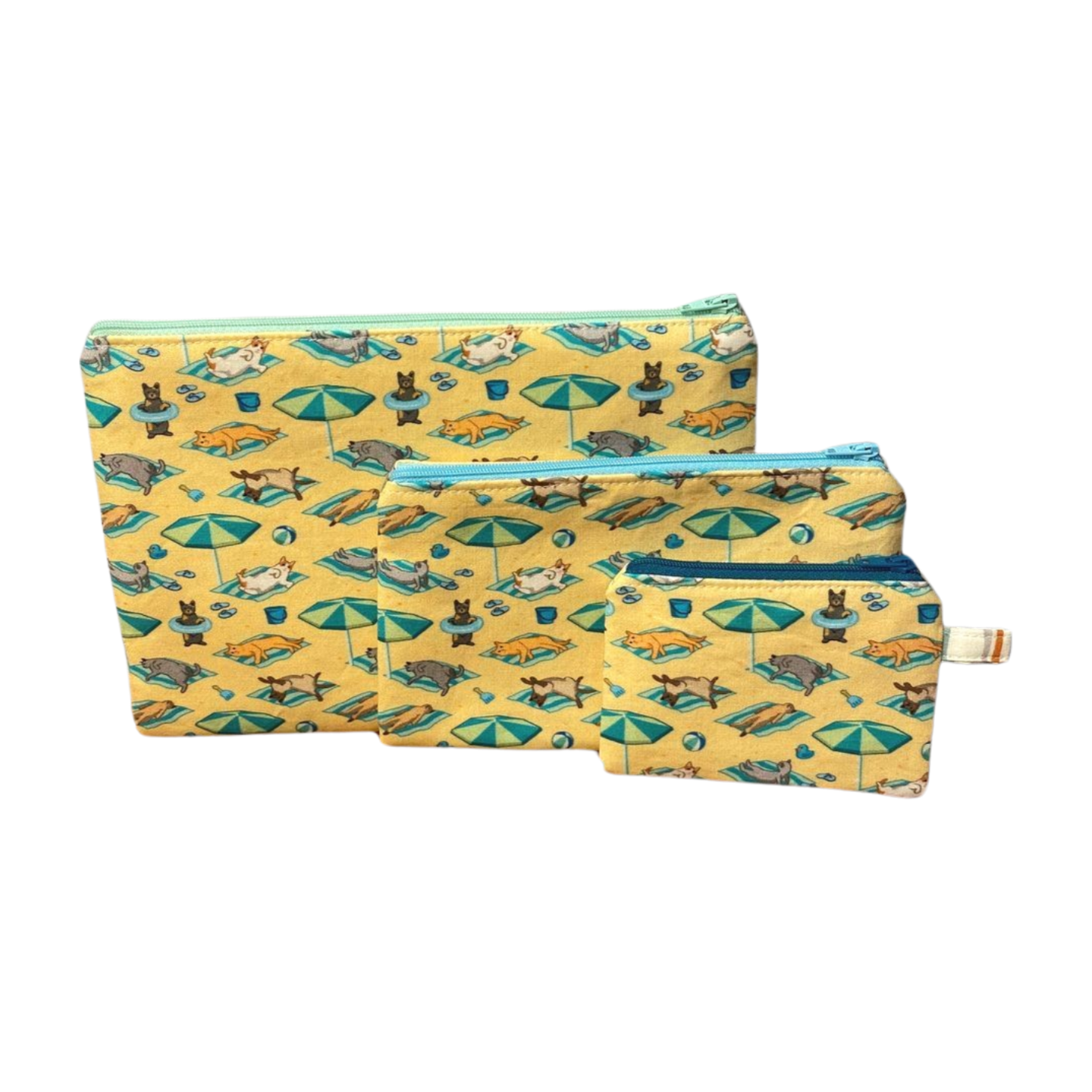 these cute zipper pouches are pawfect for any pet lover! Each pouch is made from high quality cotton fabric with interfacing for a stiff but soft outside. Each pouch is lined with a coordinating cotton fabric.