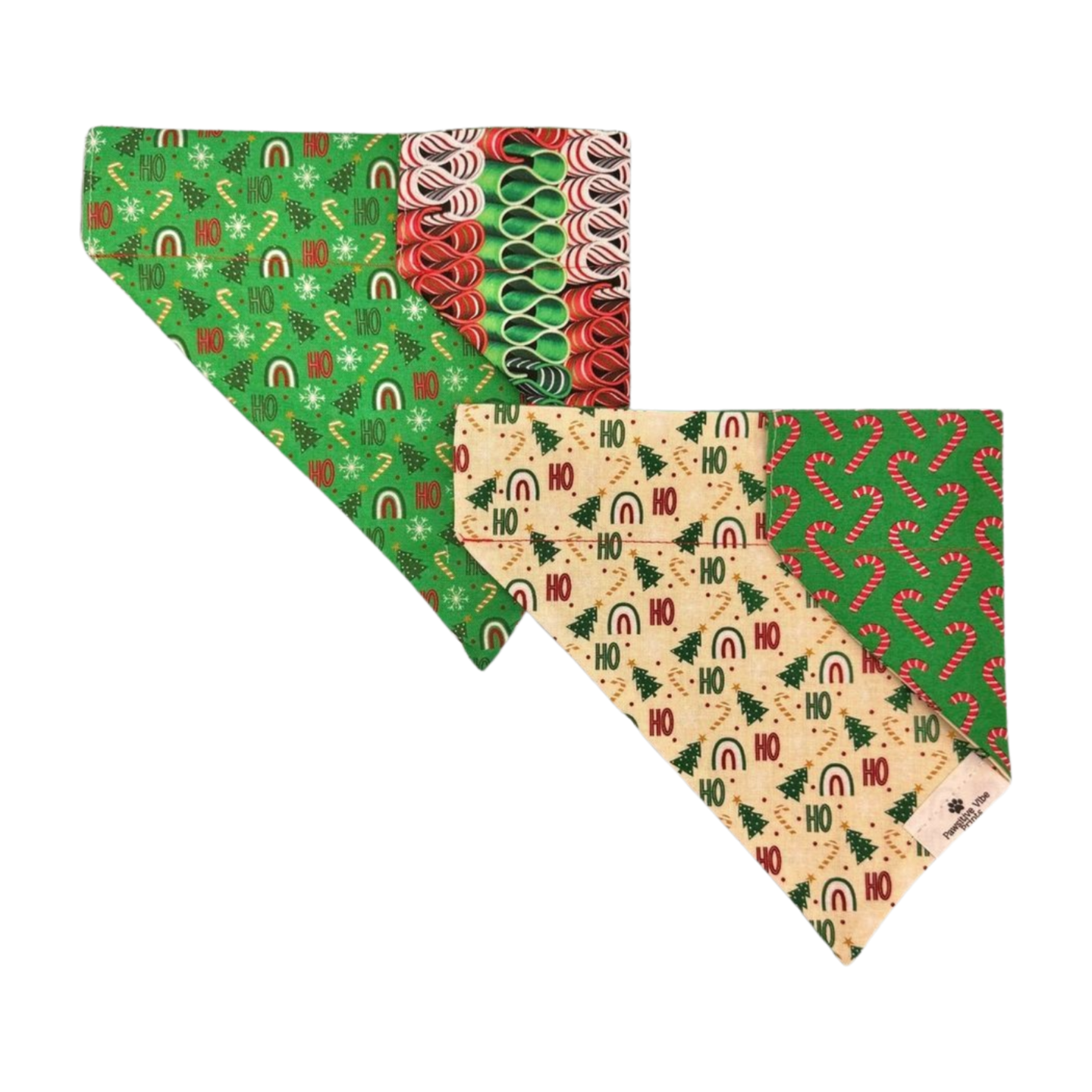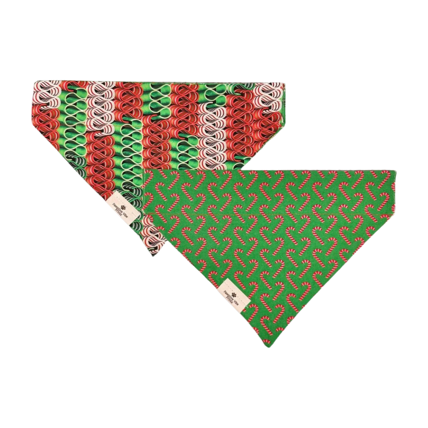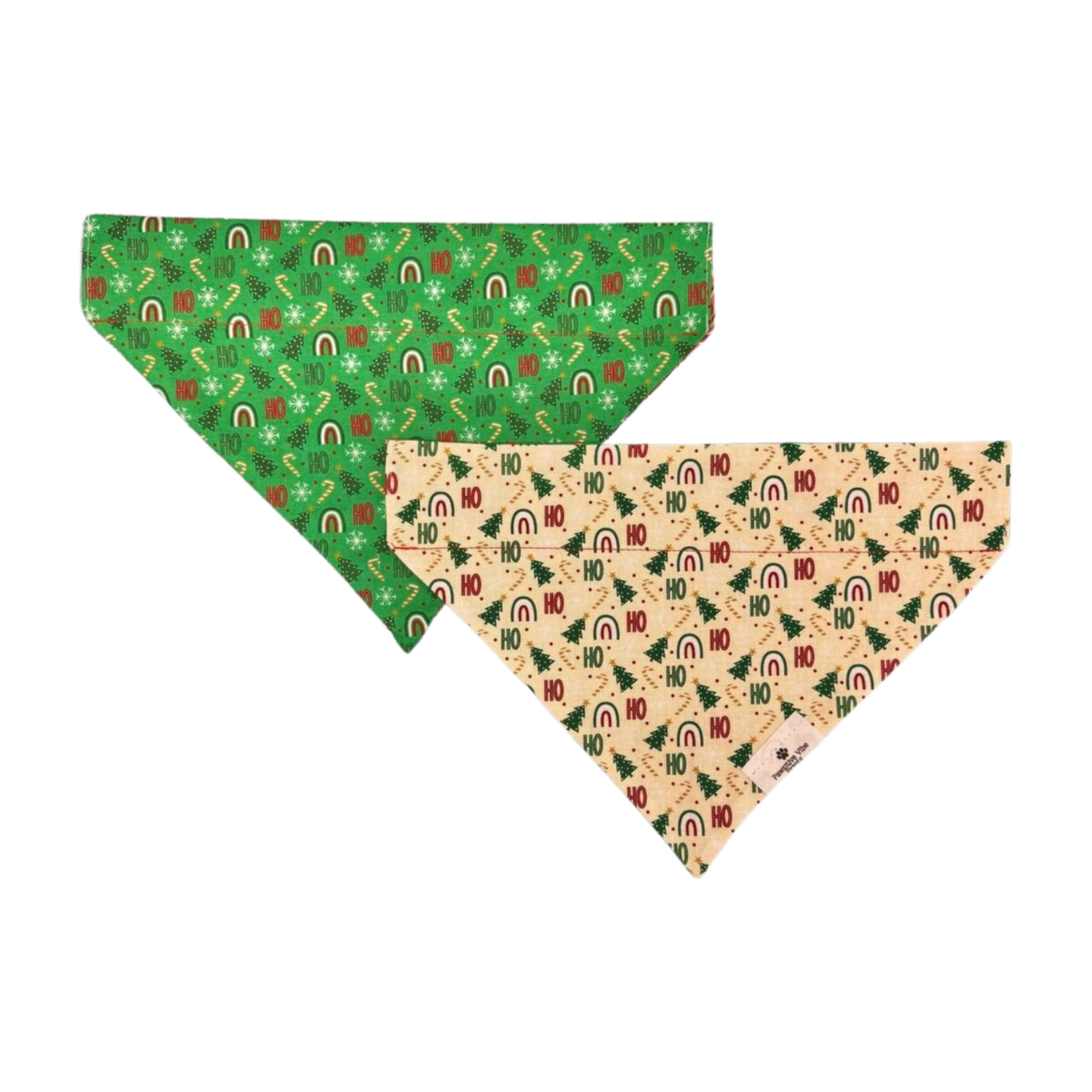 Over the collar design makes it so the bandana stays on as long as the collar is on. This reversible bandana is pawfect for your pets wardrobe!