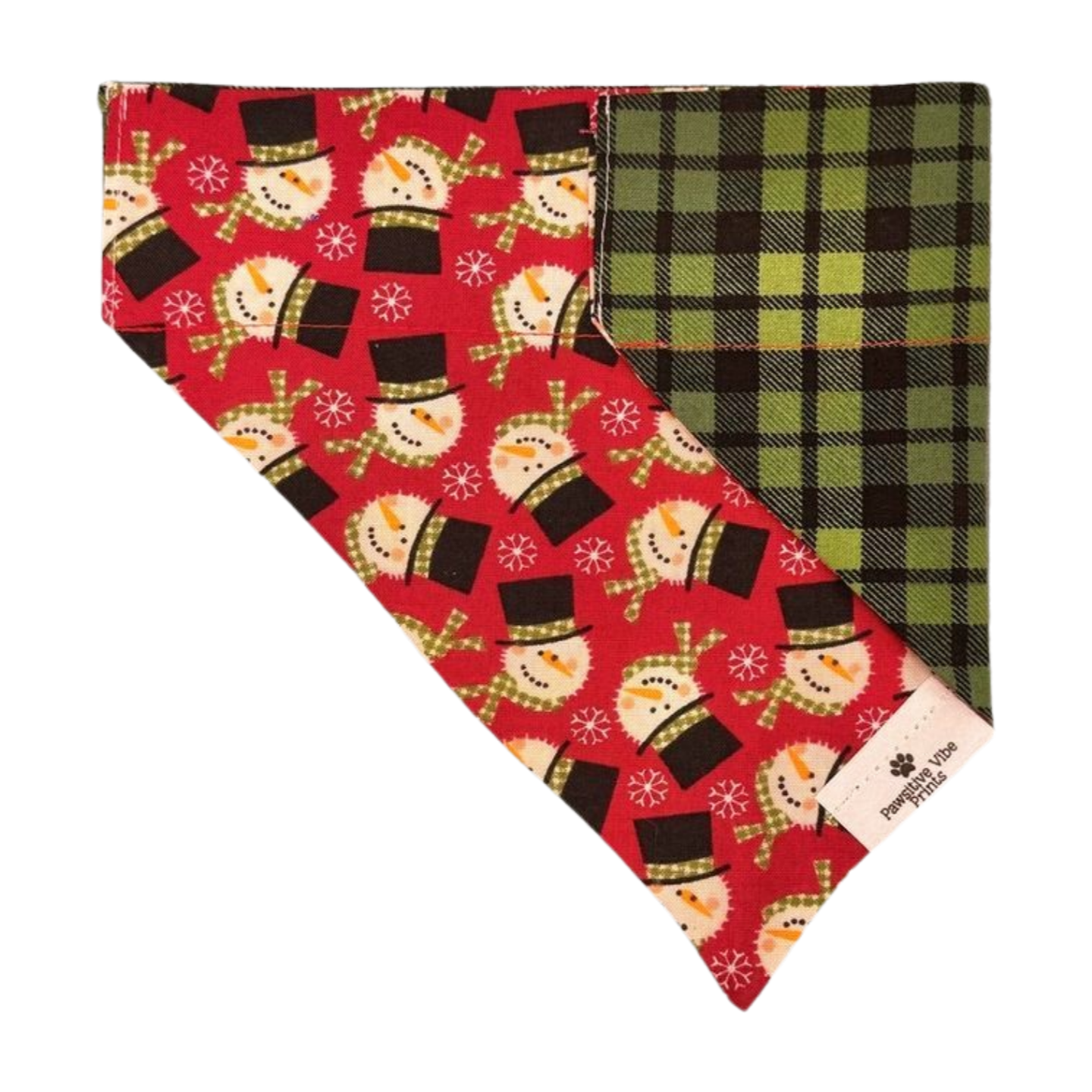 Over the collar design makes it so the bandana stays on as long as the collar is on. This reversible bandana is pawfect for your pets wardrobe!