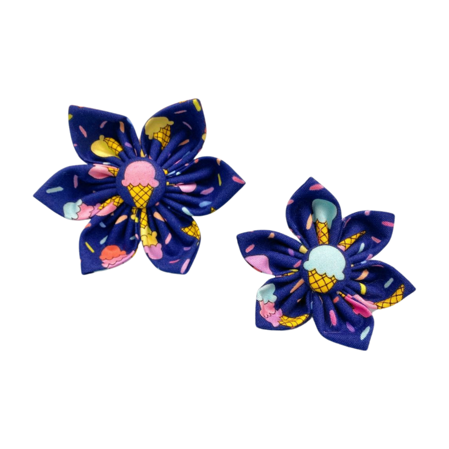 -Each collar flower has a sewn hook and loop Velcro strip on the back for collar attachment.