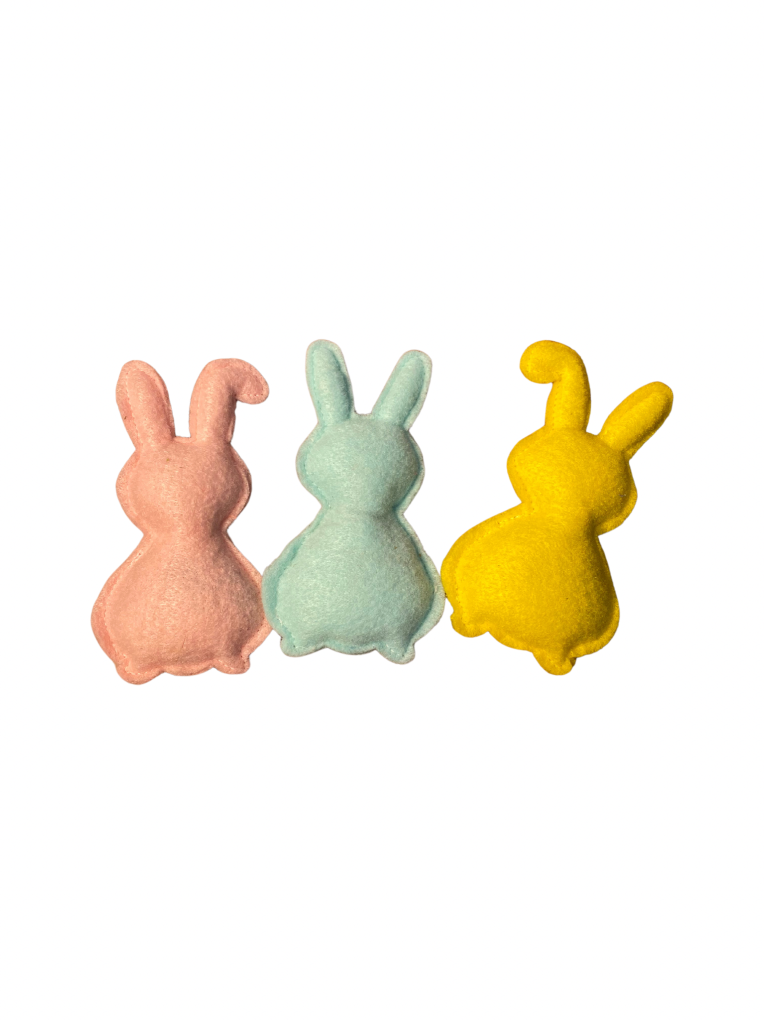 Introducing our delightful Pastel Bunny Easter Cat Toys Collection, a whimsical assortment designed to bring joy and enchantment to your feline friend's playtime. Each toy in this set features a charming pastel color palette, with hues of pink, blue, and yellow, creating a visually appealing and festive atmosphere.
