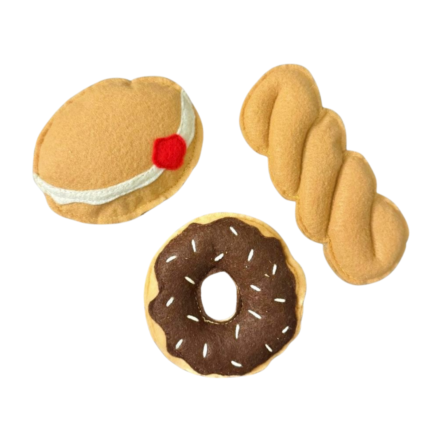 Note**since these are handmade, there may be small variations in stitching and patterns, but all toys are made from the same kind of felt and thread.