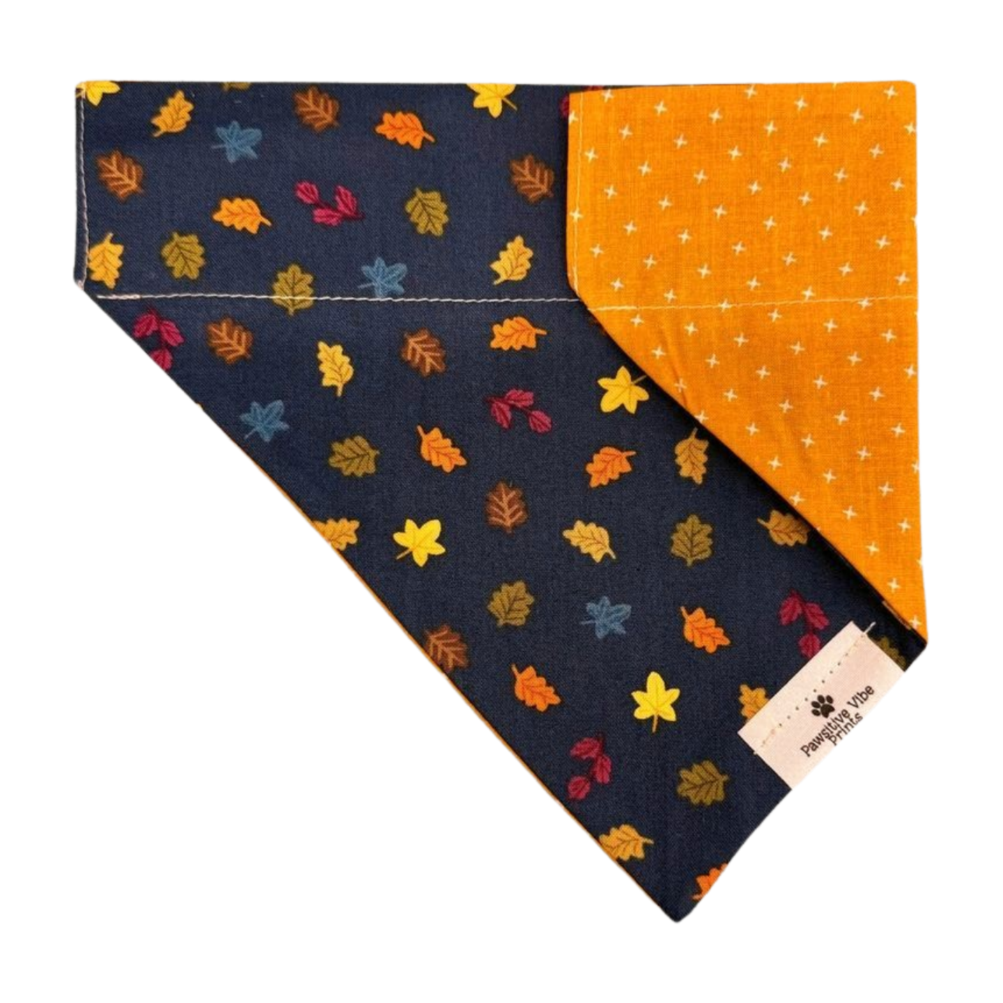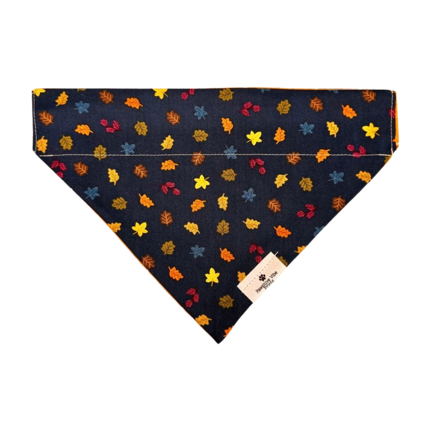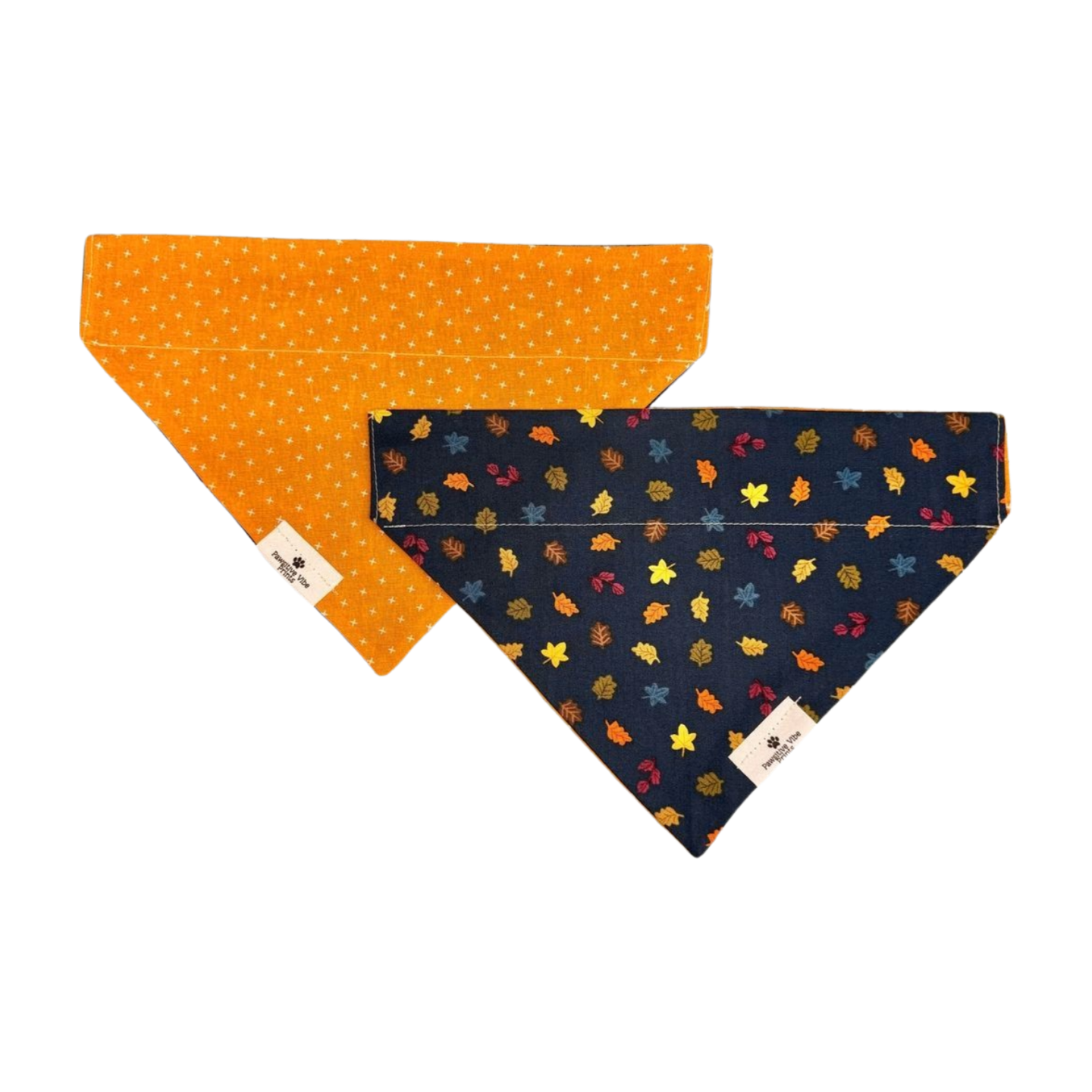 Over the collar design makes it so the bandana stays on as long as the collar is on. This bandana has two prints for the price of one!