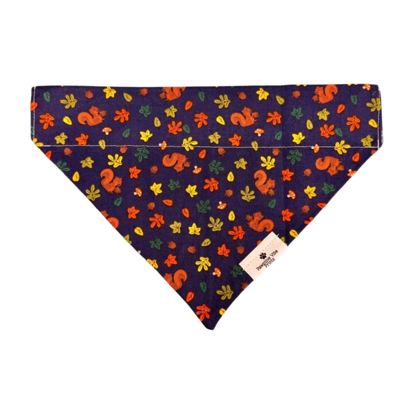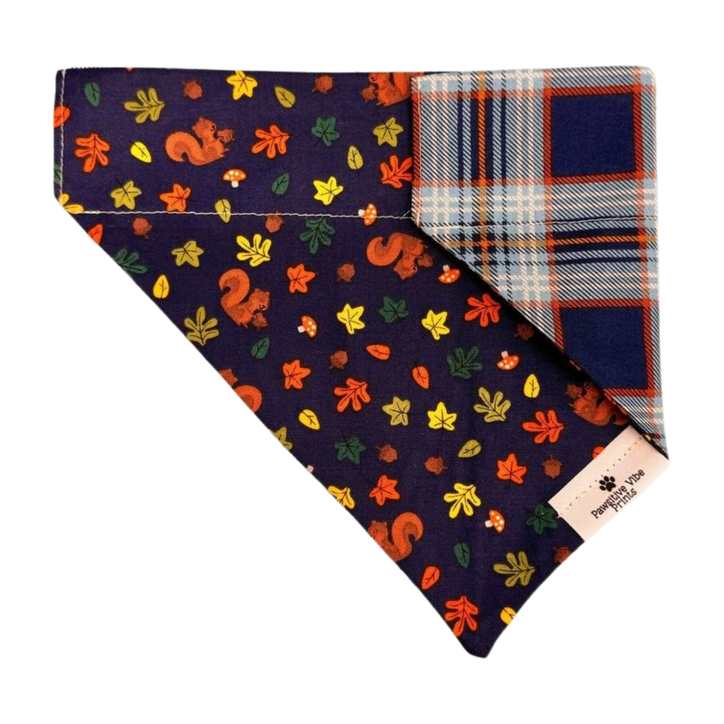Over the collar design makes it so the bandana stays on as long as the collar is on. This bandana has two prints for the price of one!