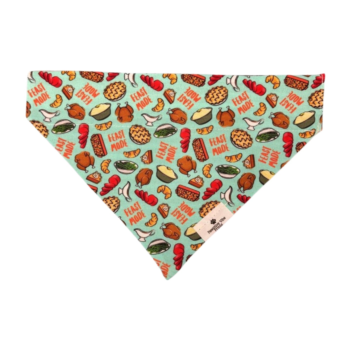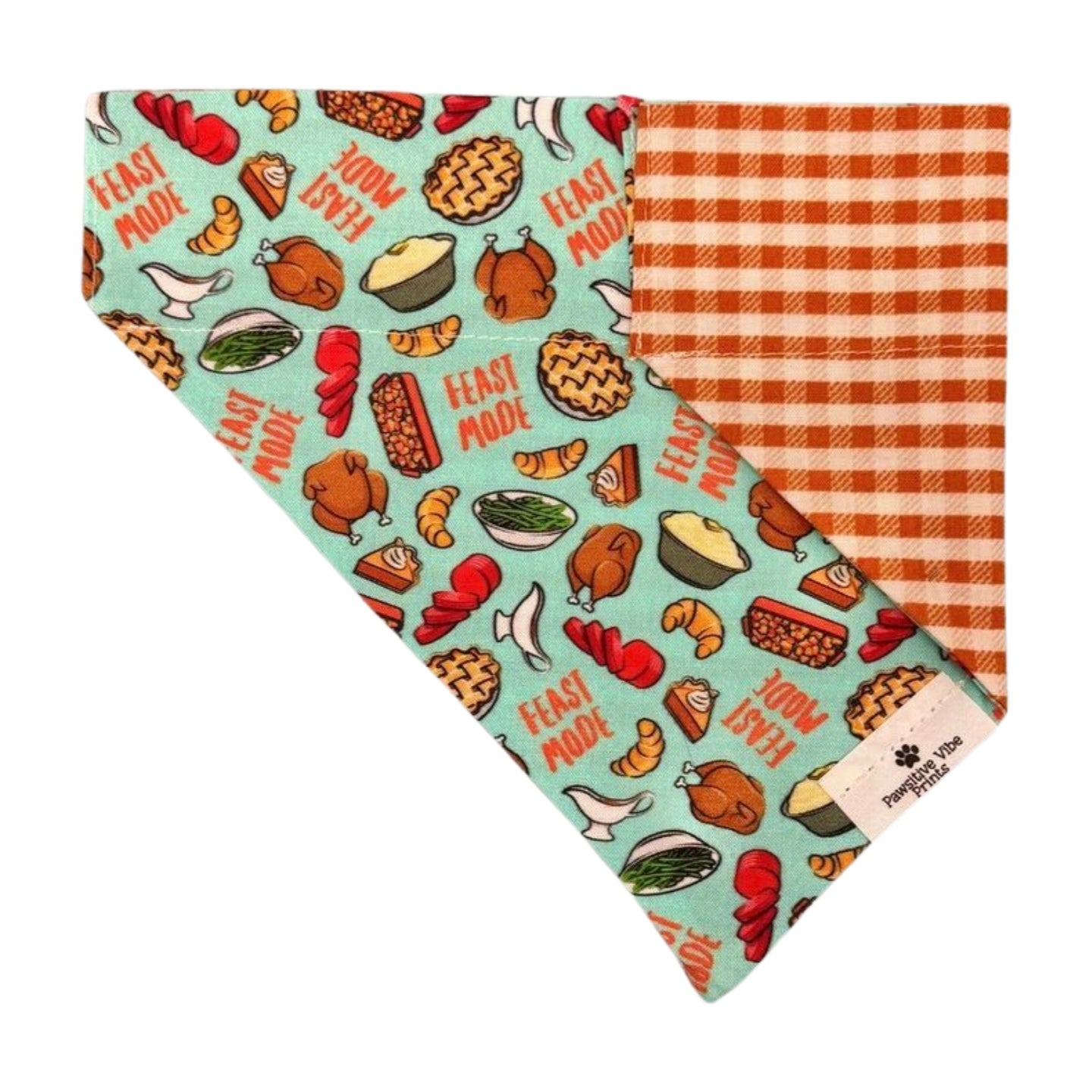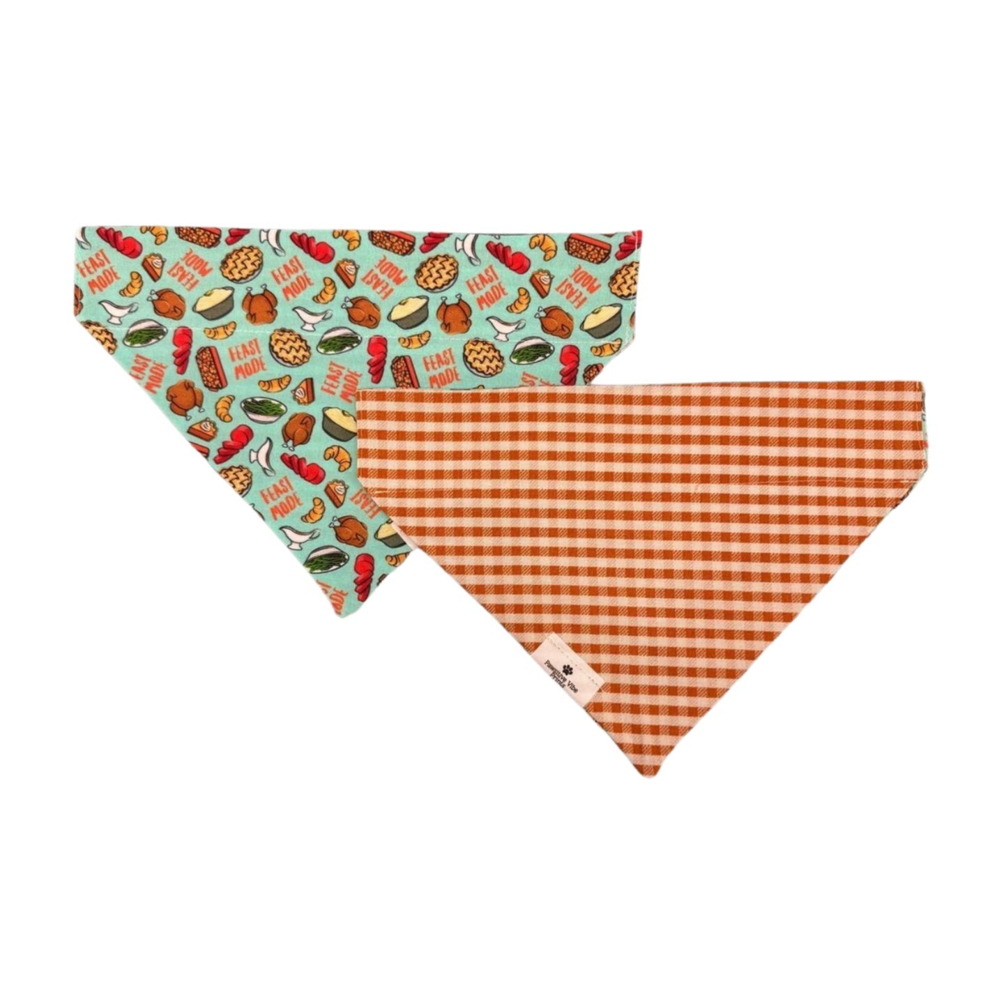 Over the collar design makes it so the bandana stays on as long as the collar is on. This reversible bandana is pawfect for your pets wardrobe!