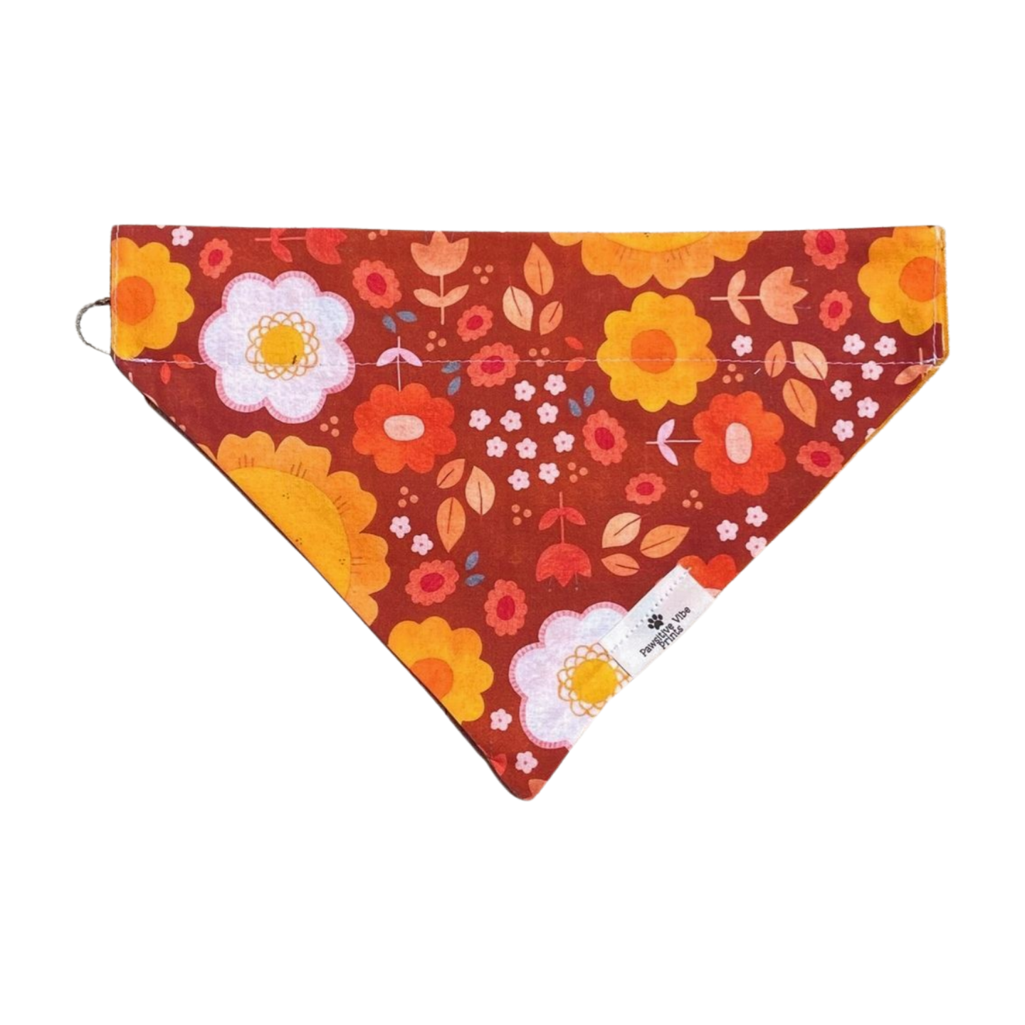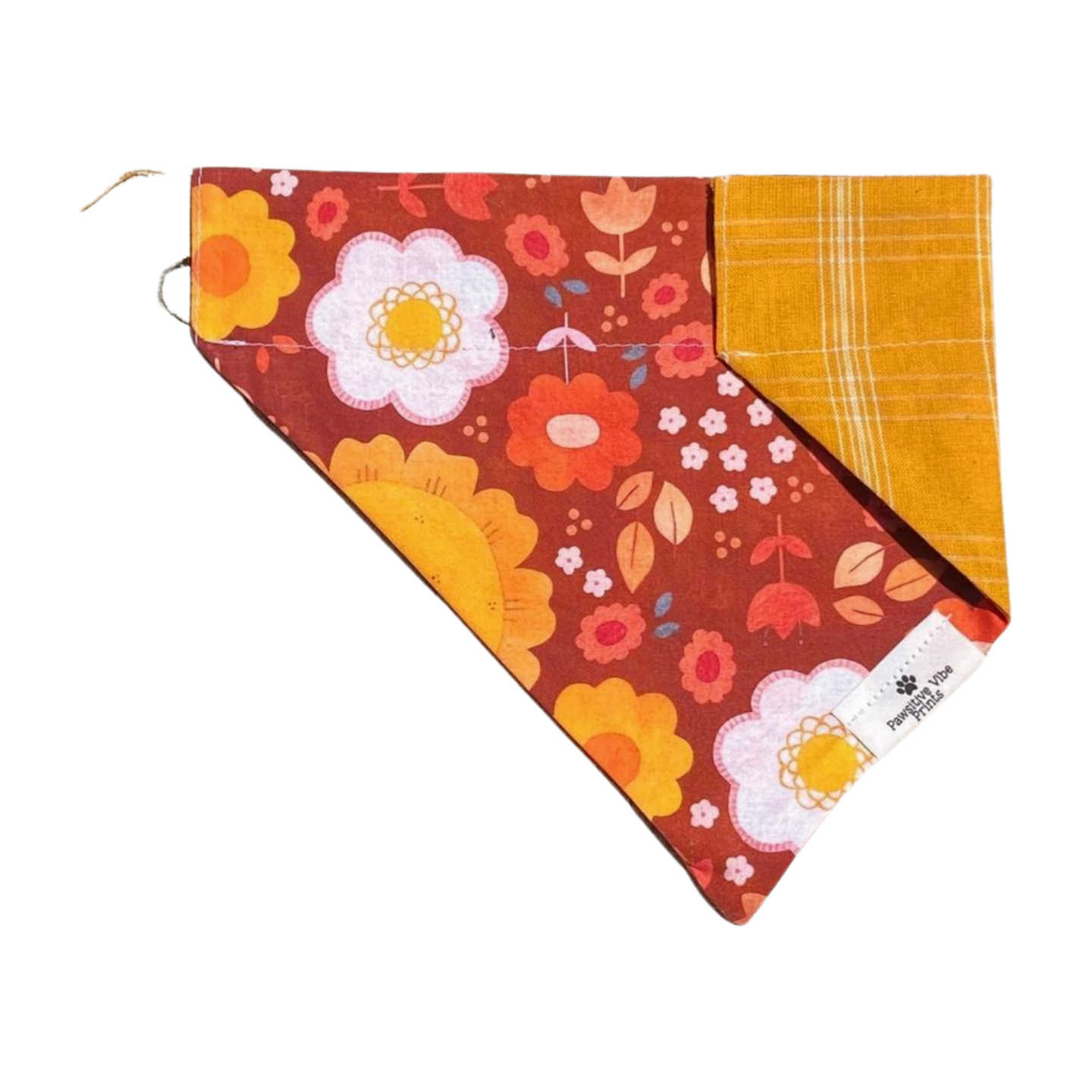 Over the collar design makes it so the bandana stays on as long as the collar is on. This reversible bandana is pawfect for your pets wardrobe!