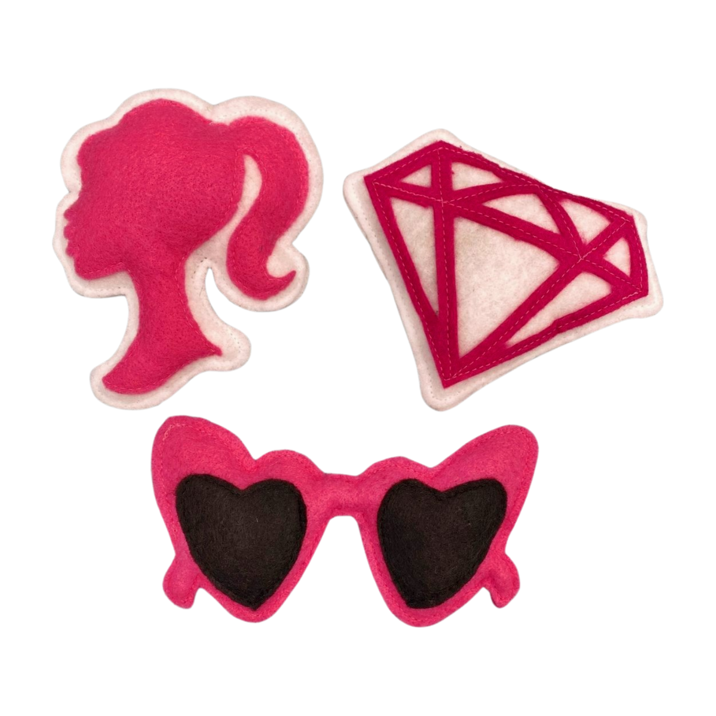 Note**since these are handmade, there may be small variations in stitching and patterns, but all toys are made from the same kind of felt and thread.