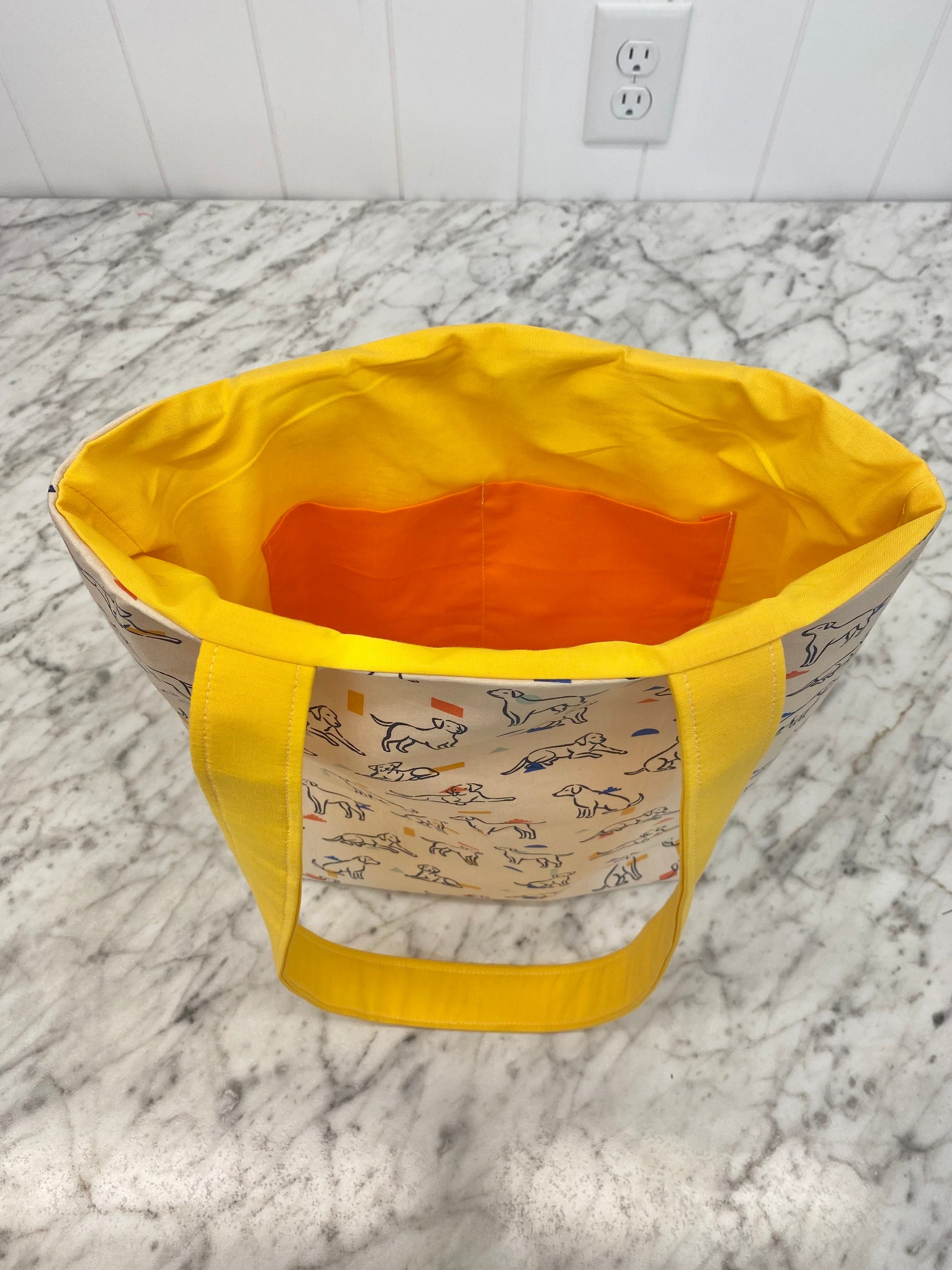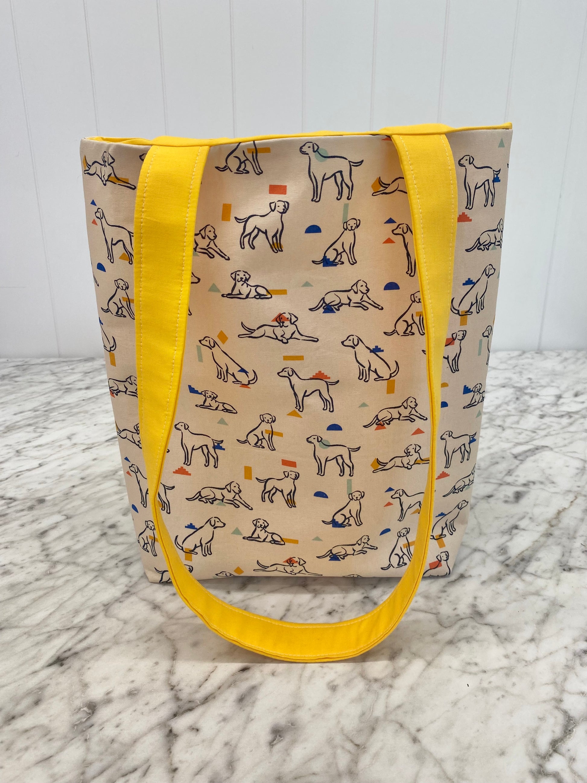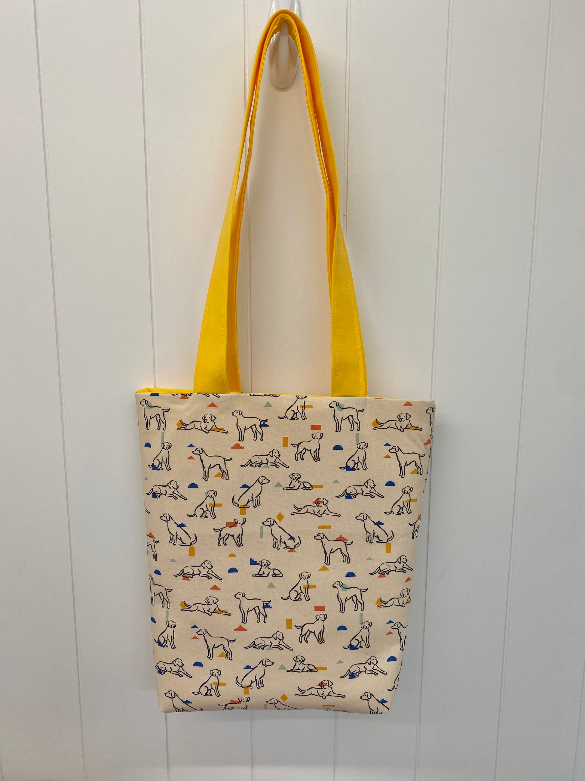 Each tote bag measures approximately 13.5” wide and 15” tall, with a more boxy feel than a regular flat canvas tote.