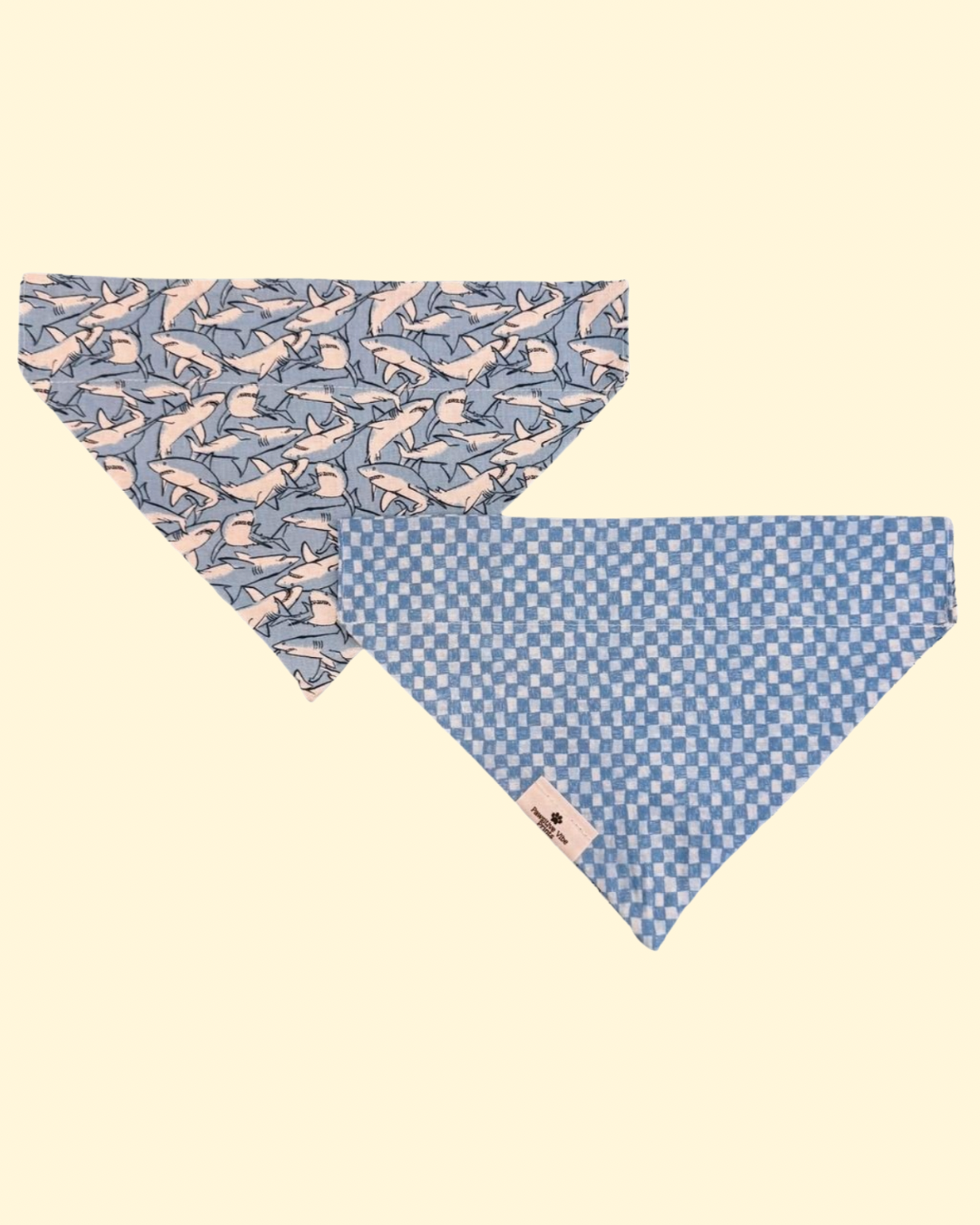Over the collar design makes it so the bandana stays on as long as the collar is on. This reversible bandana is pawfect for your pets wardrobe!