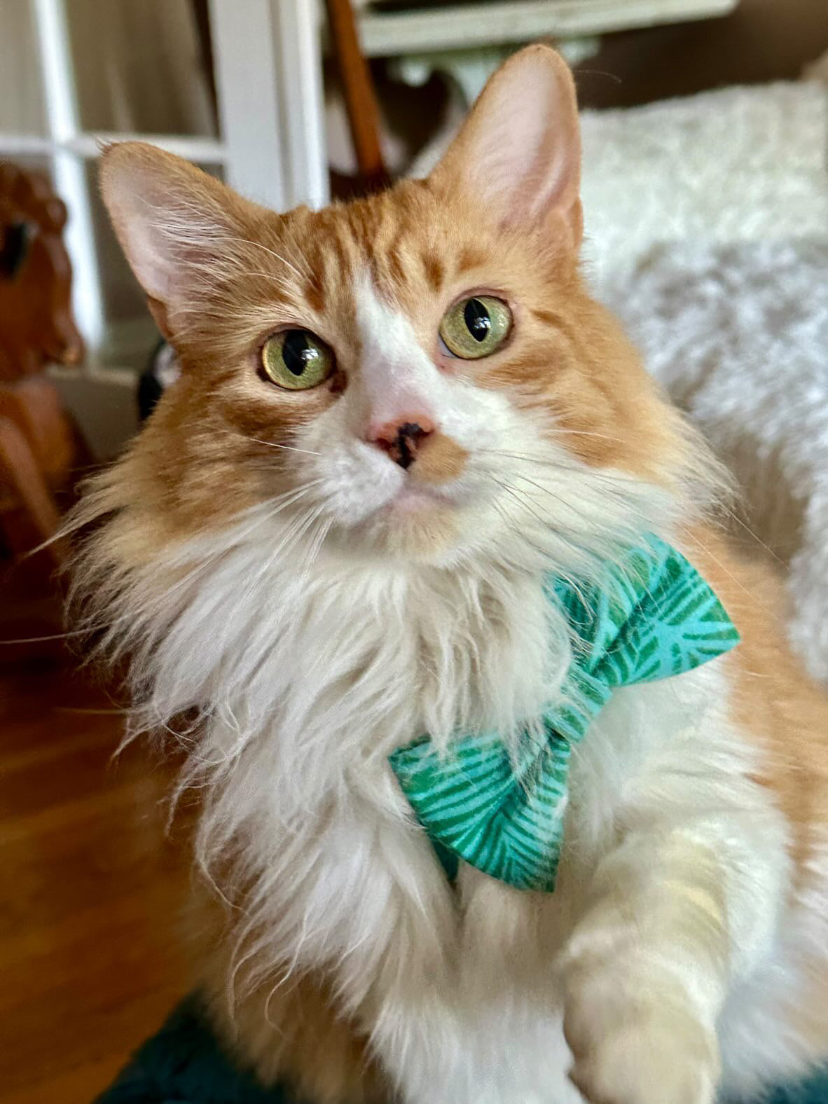 **do not leave pets unattended while wearing a bowtie. When putting a bowtie on collar make sure you are still able to fit at least two fingers under the collar
