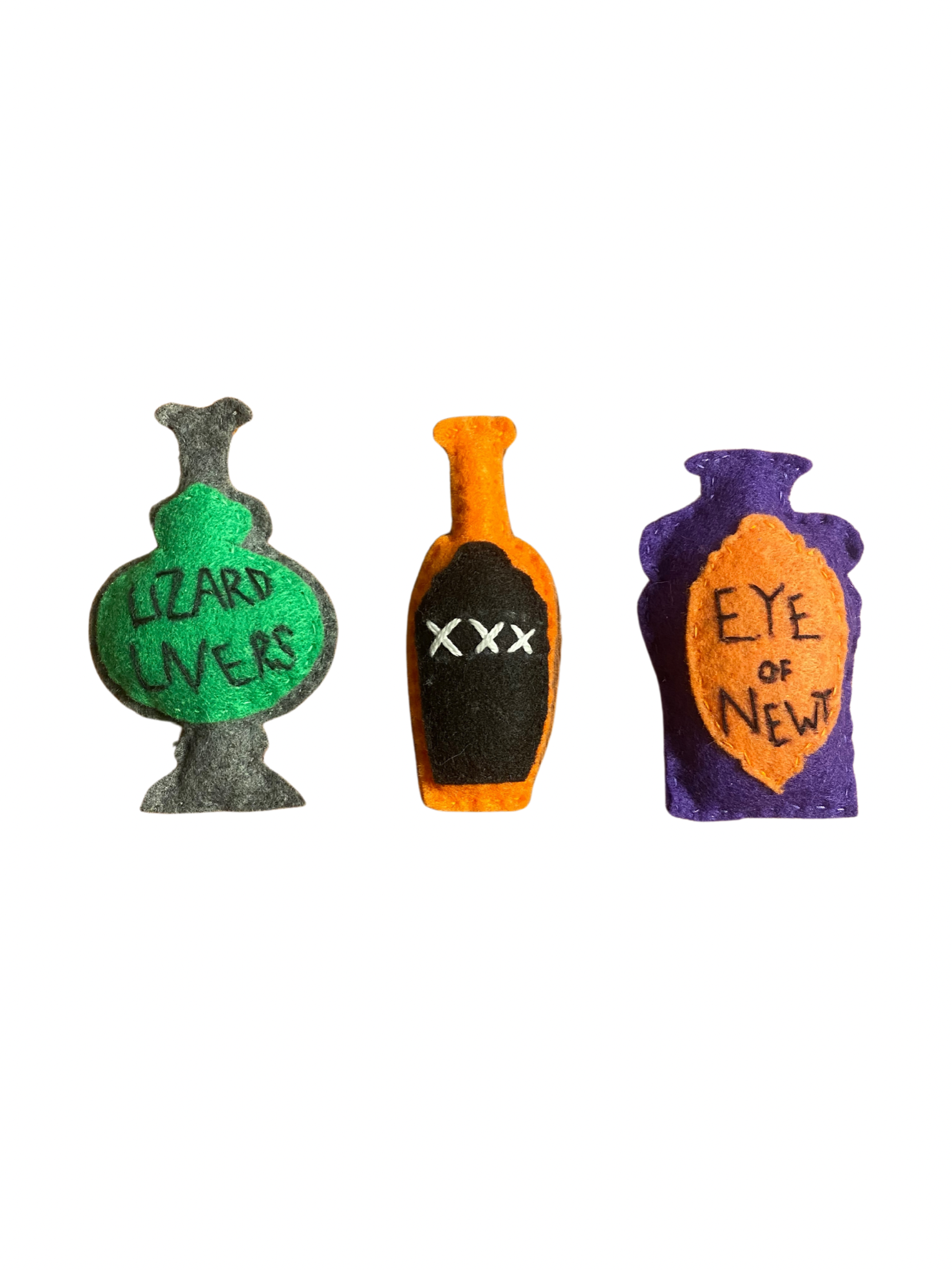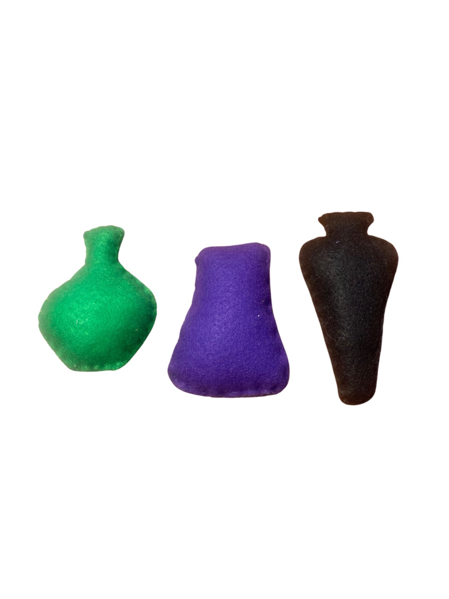 • made from felt, and filled with polyfil stuffing and catnip/ silver-vine mix
