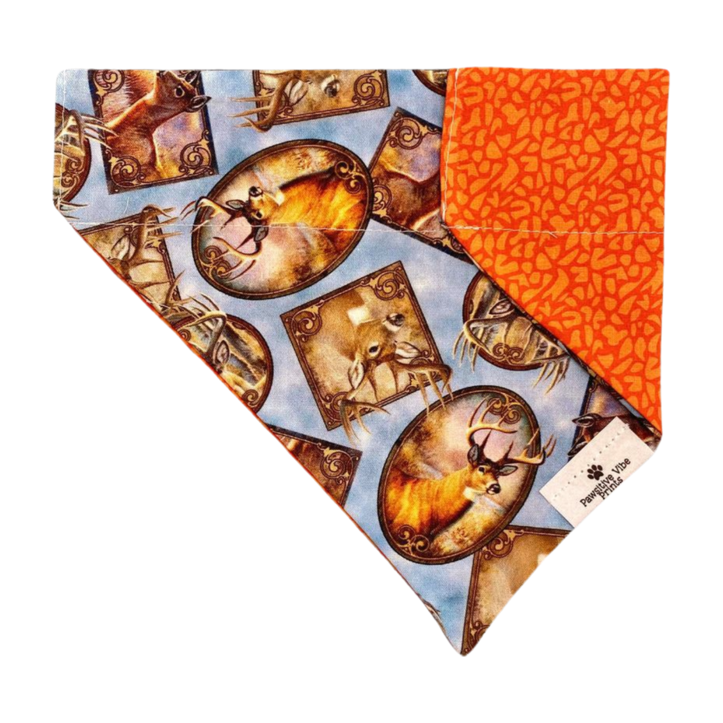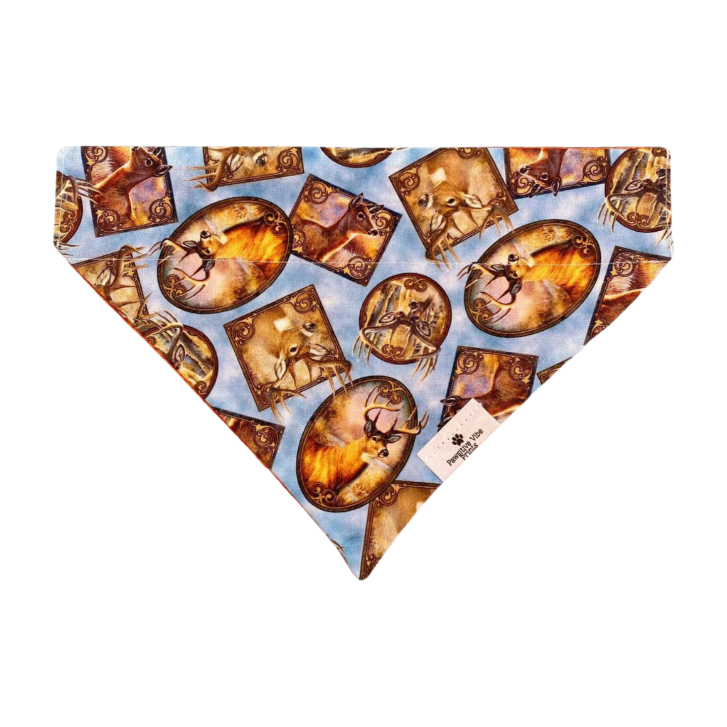 Over the collar design makes it so the bandana stays on as long as the collar is on. This bandana has two prints for the price of one!