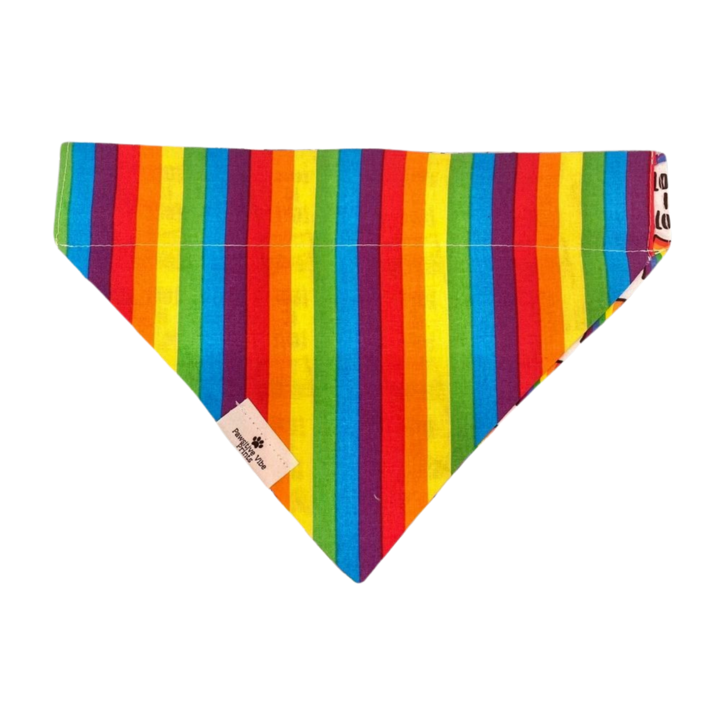 Over the collar design makes it so the bandana stays on as long as the collar is on. This bandana has two prints for the price of one!