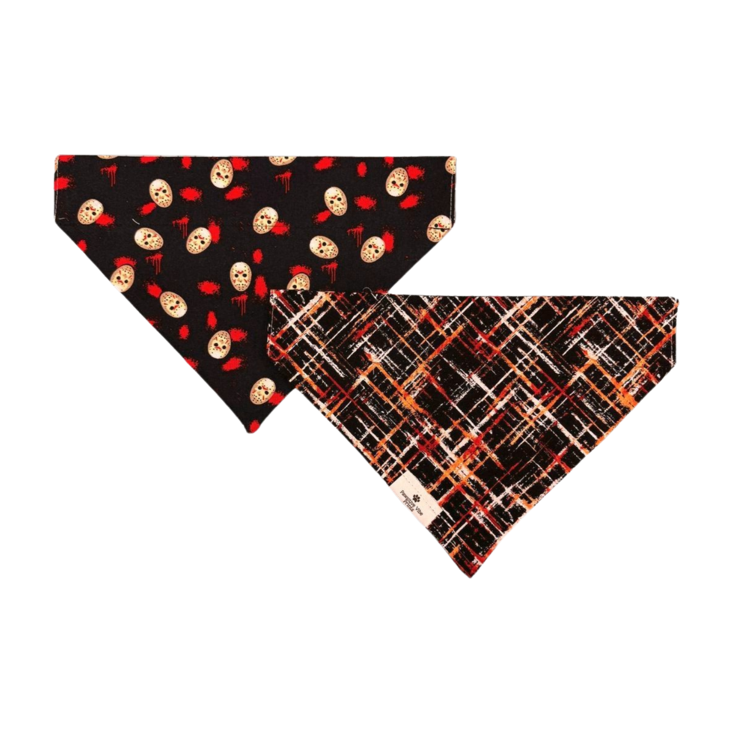 Over the collar design makes it so the bandana stays on as long as the collar is on. This reversible bandana is pawfect for your pets wardrobe!