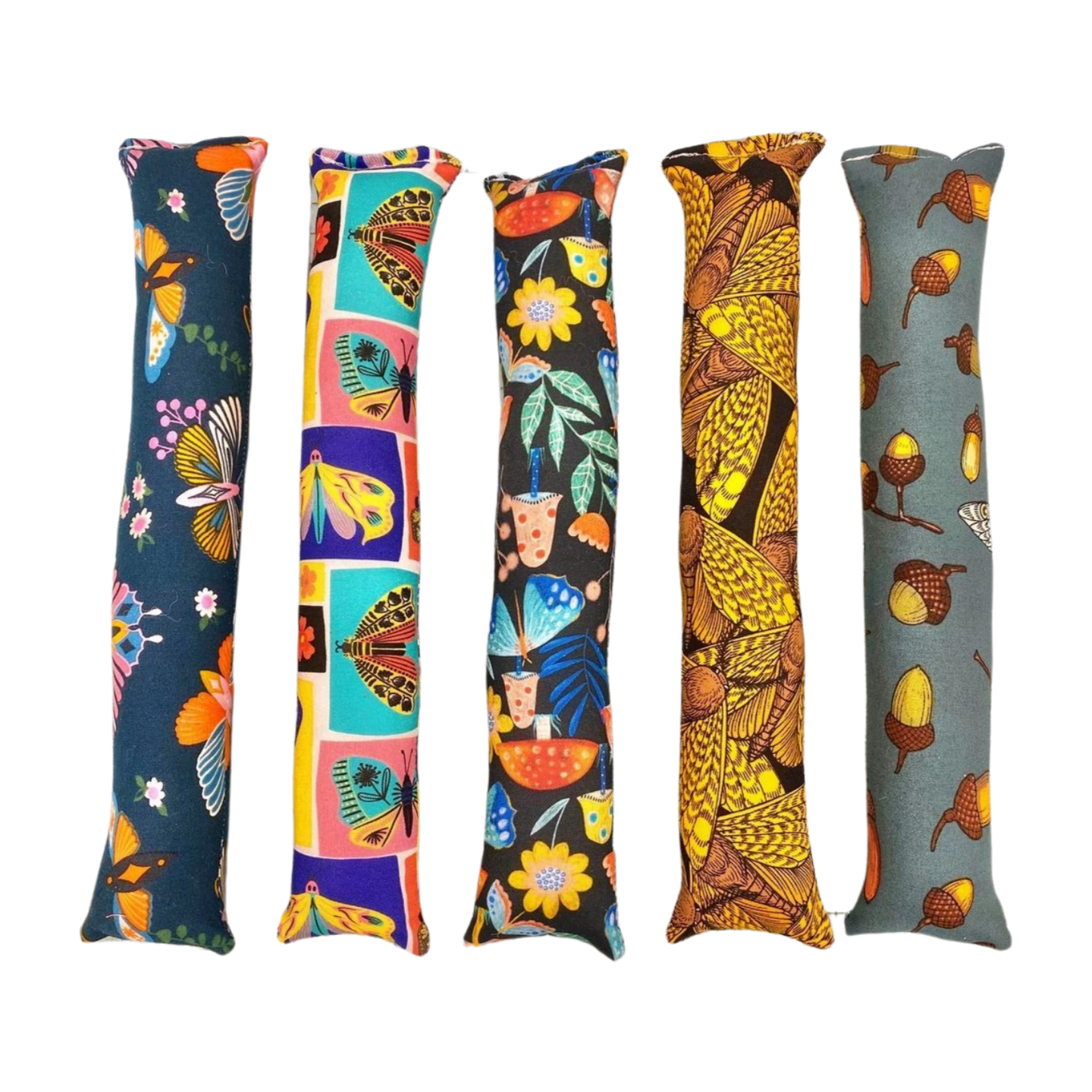 each cat kicker is made from 100% cotton fabric, machine stitched for durability, and filled with stuffing and 3 large scoops of catnip silvervine mixture!