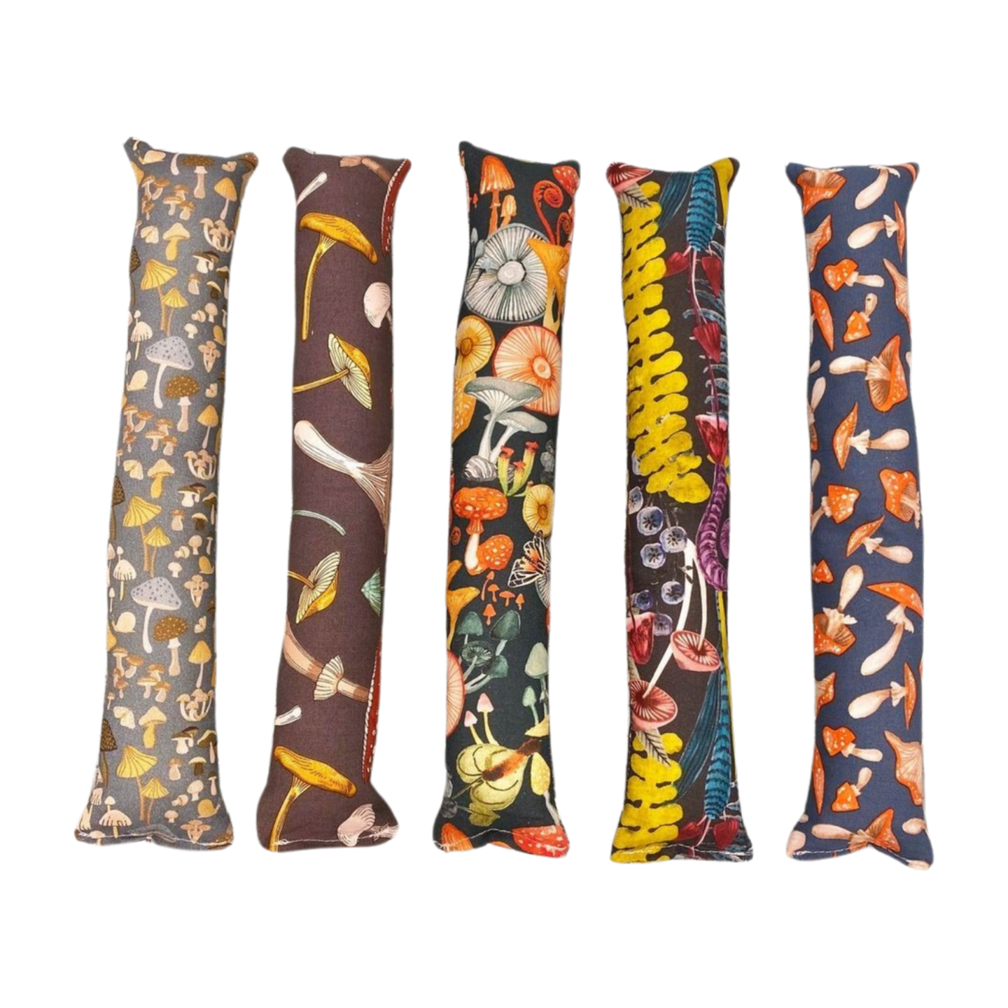 each cat kicker is made from 100% cotton fabric, machine stitched for durability, and filled with stuffing and 3 large scoops of catnip silvervine mixture!