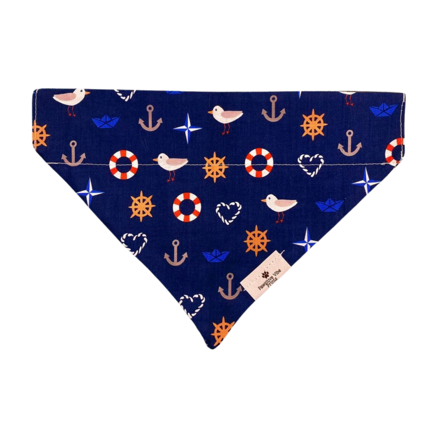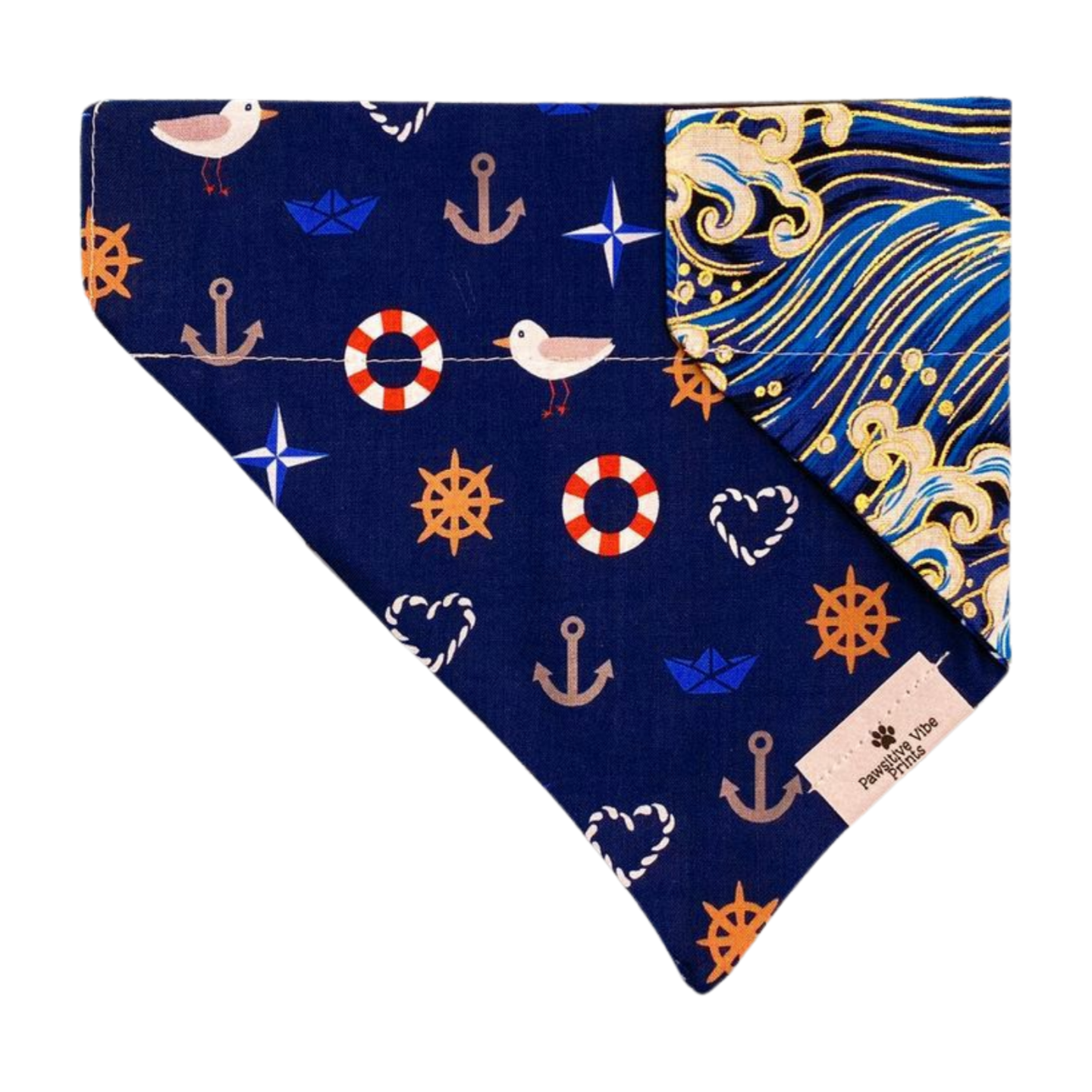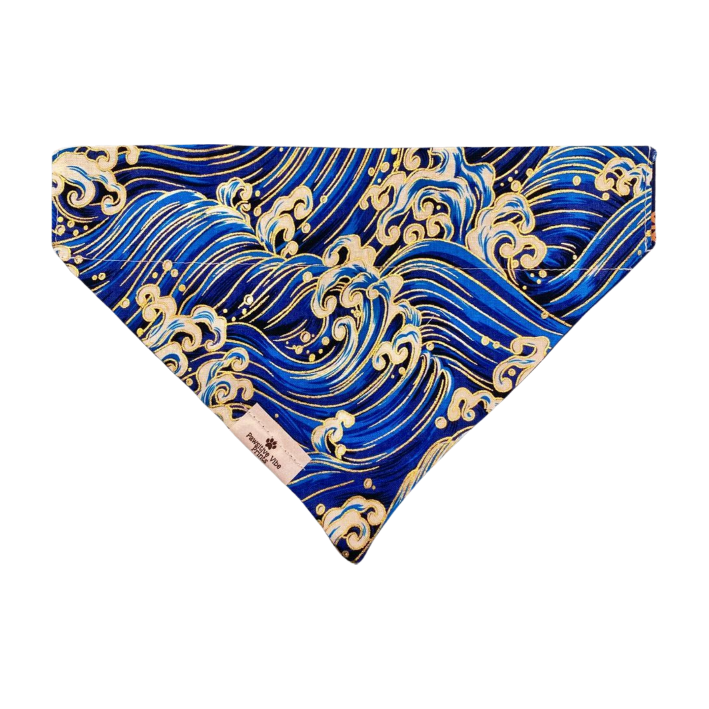 Over the collar design makes it so the bandana stays on as long as the collar is on. This bandana has two prints for the price of one!