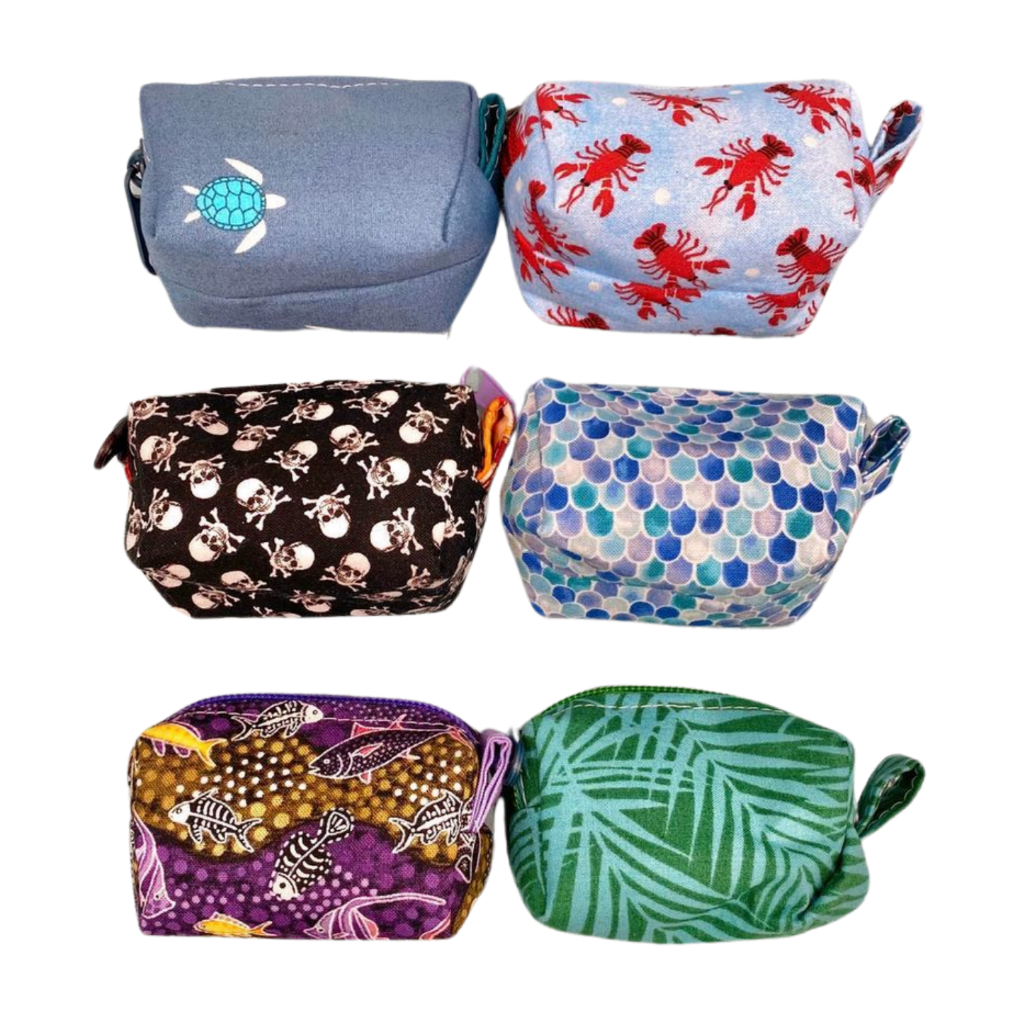 The bag measures approximately 2” tall, 2” wide and 3” long