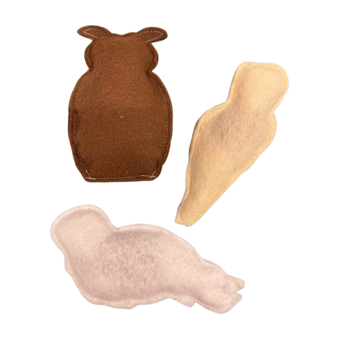 Note**since these are handmade, there may be small variations in stitching and patterns, but all toys are made from the same kind of felt and thread.