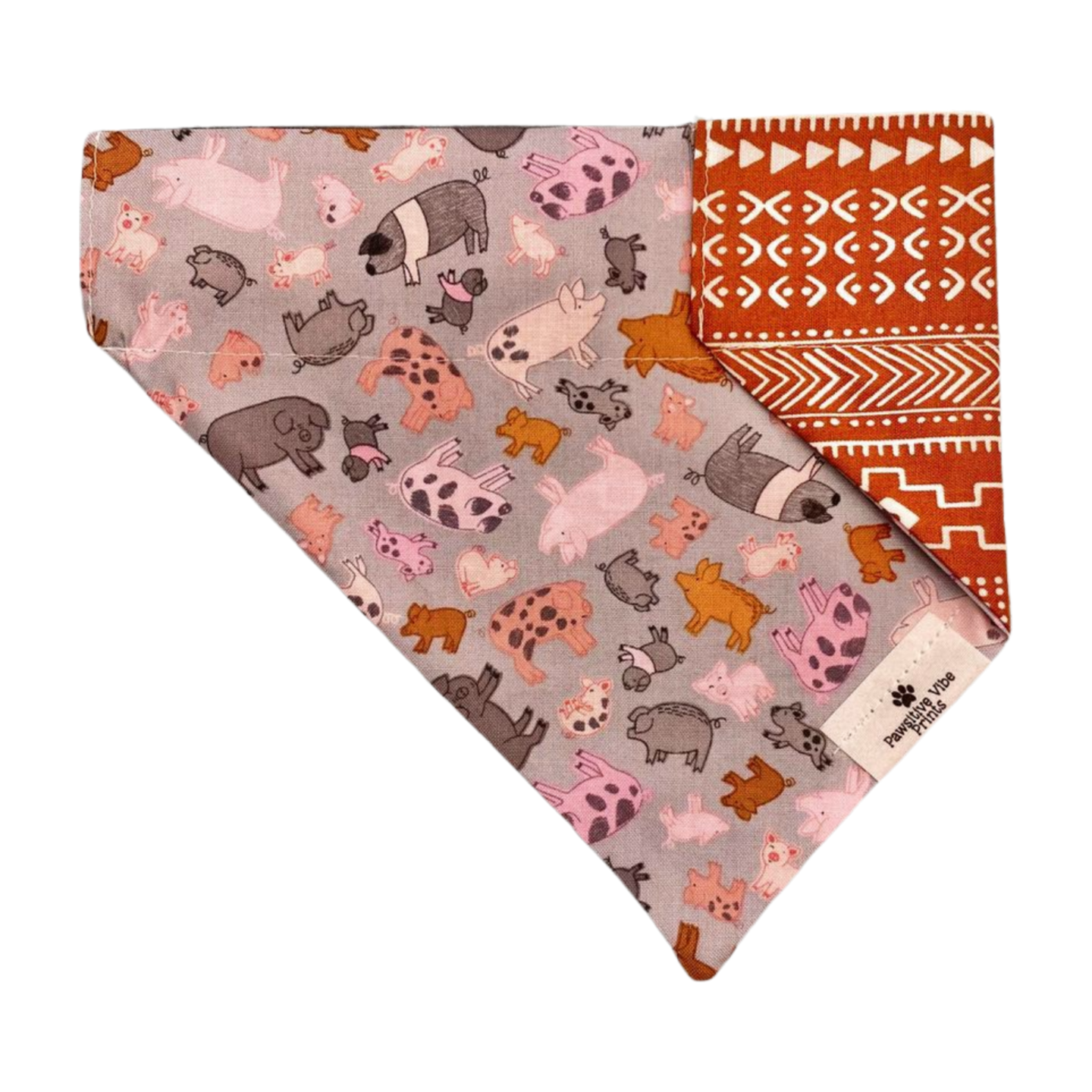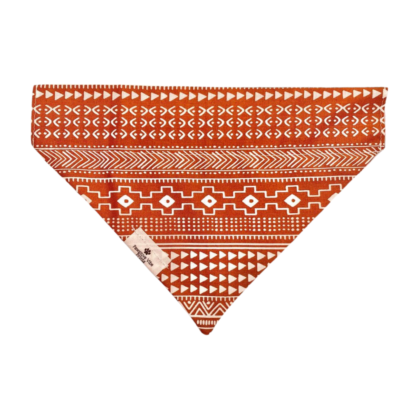 Over the collar design makes it so the bandana stays on as long as the collar is on. This bandana has two prints for the price of one!