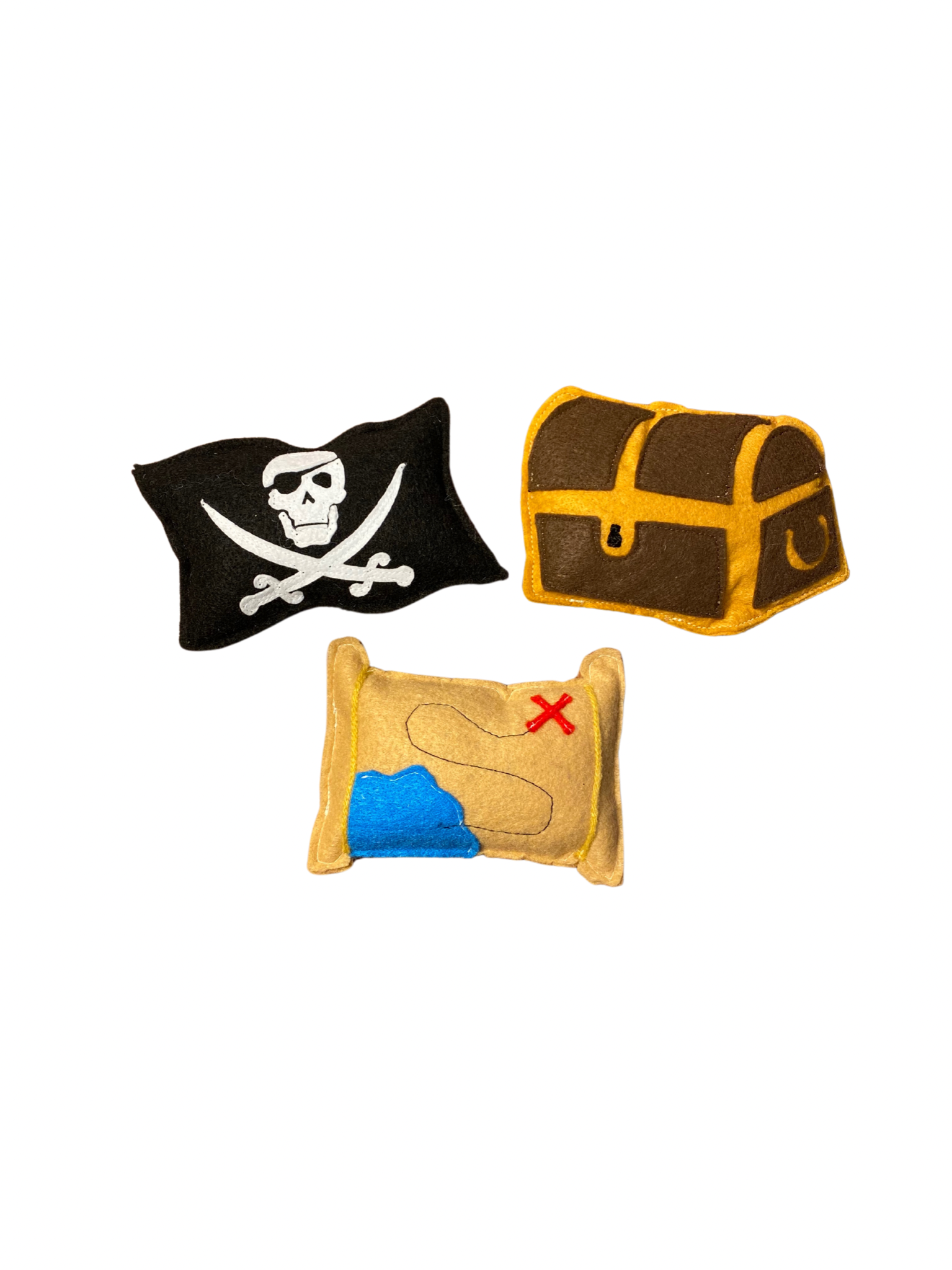 Ahoy matey! Get ready for some swashbuckling fun with our "Pirate Paws: Handmade Beach Cat Toys" collection. This collection features three separate cat toys inspired by the adventurous life of pirates. Your cat will embark on a treasure hunt with a pirate flag, treasure chest, and treasure map toy!