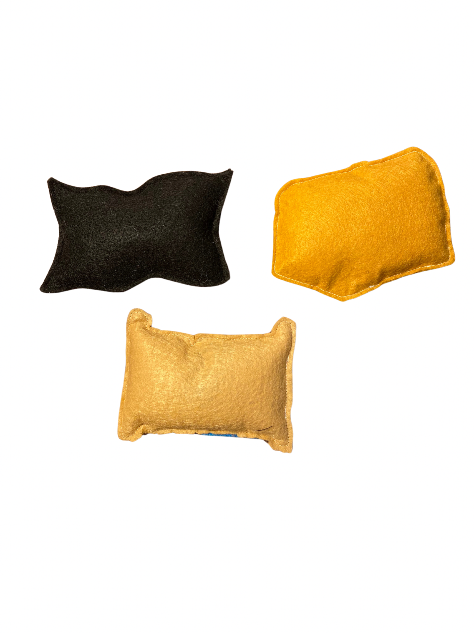 • made from felt, and filled with polyfil stuffing and catnip/ silver-vine mix