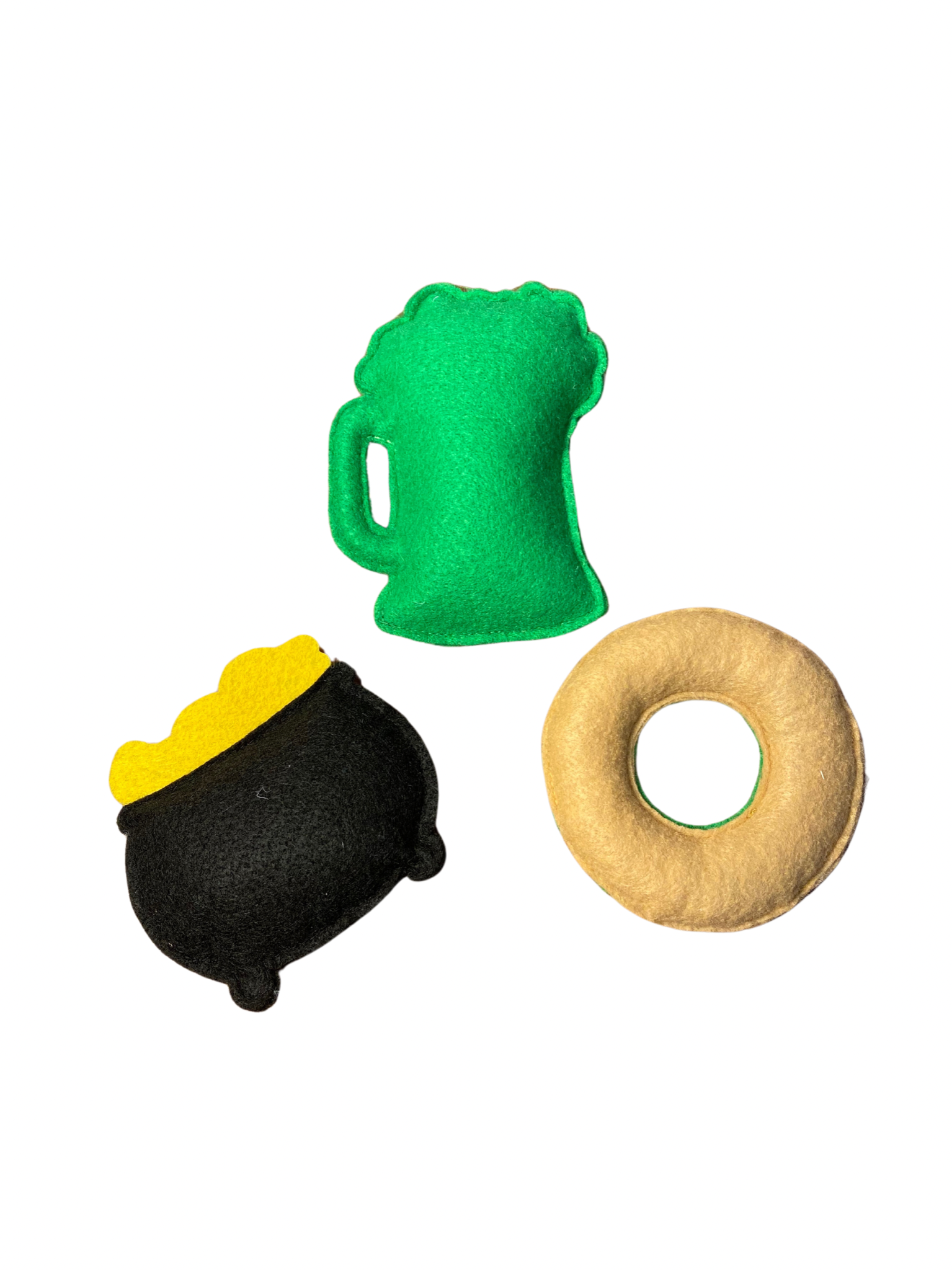 Introducing our delightful "Pot of Gold Cat Toy Collection," specially designed to bring the luck of the Irish to your feline friend's playtime. This collection includes three charming cat toys, each inspired by beloved symbols of St. Patrick's Day.