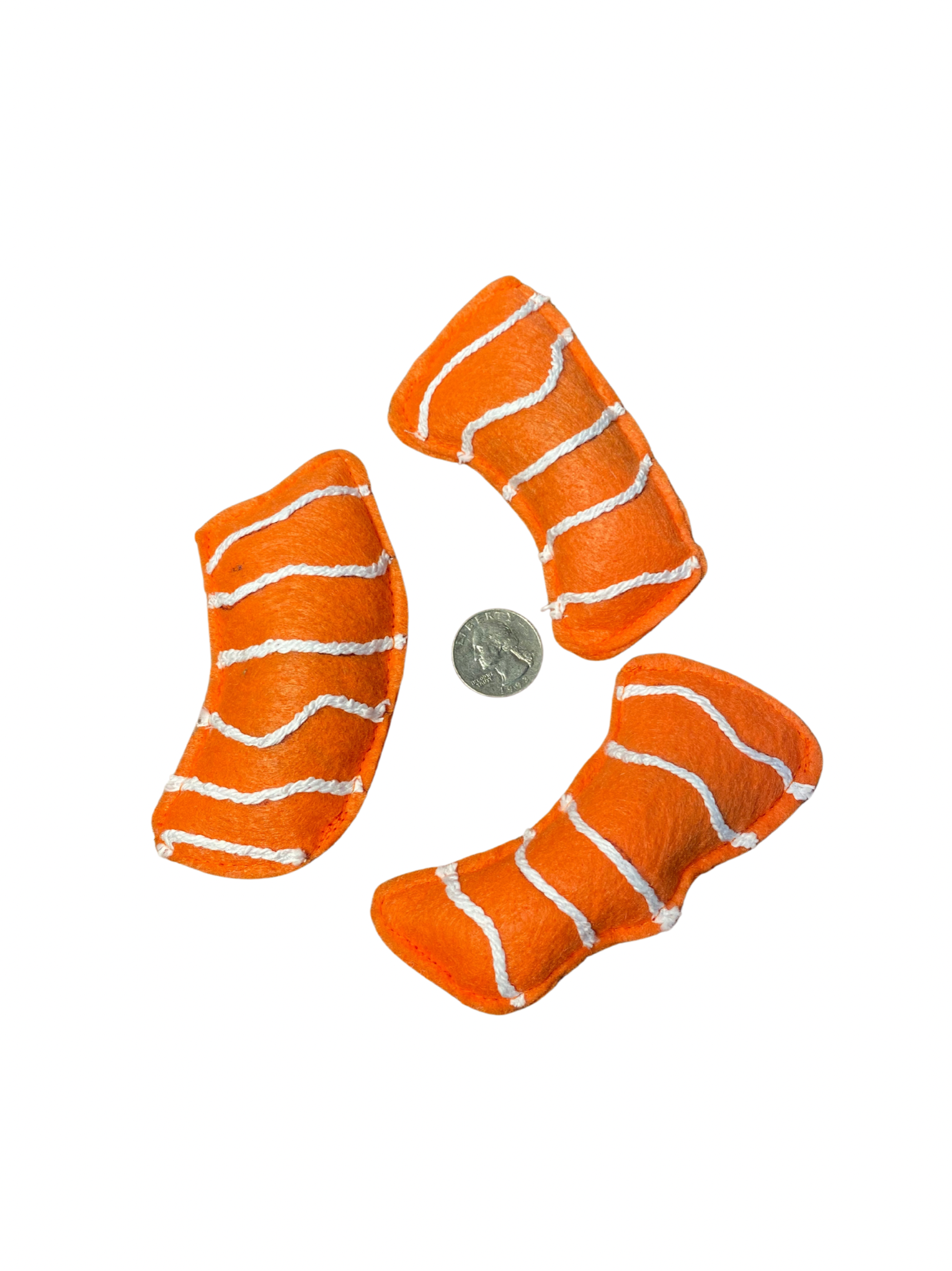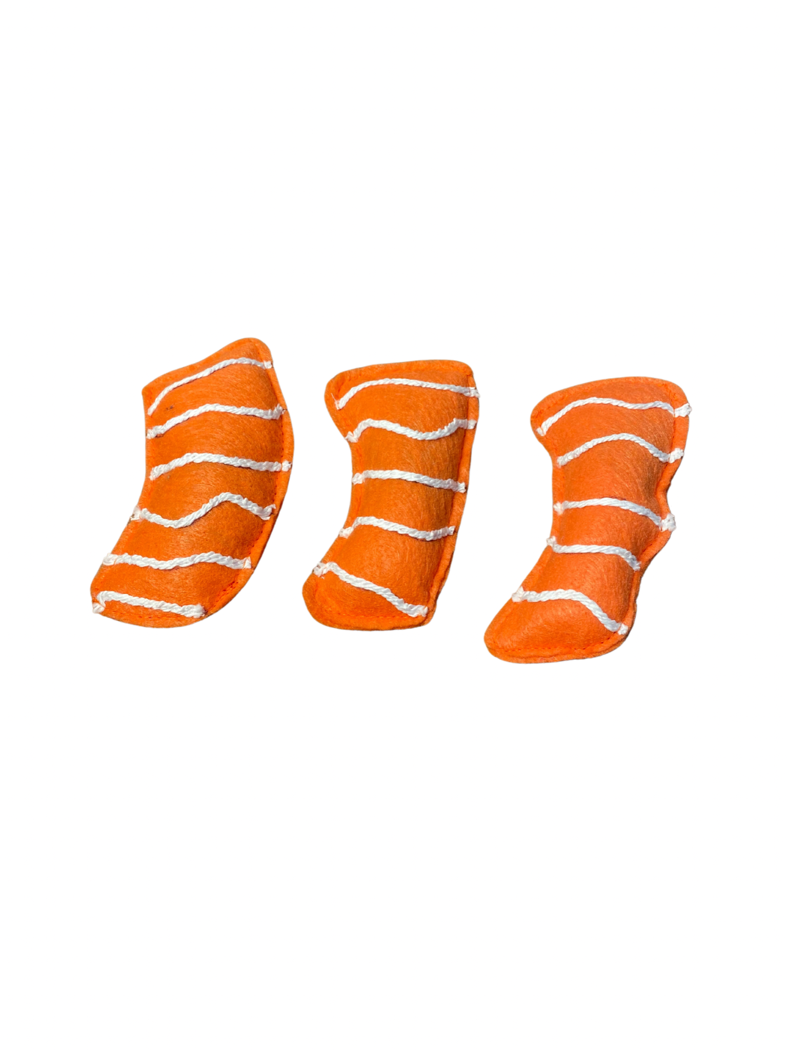 Note**Since these are handmade, there may be small variations in stitching and patterns, but all toys are made from the same kind of felt and thread.