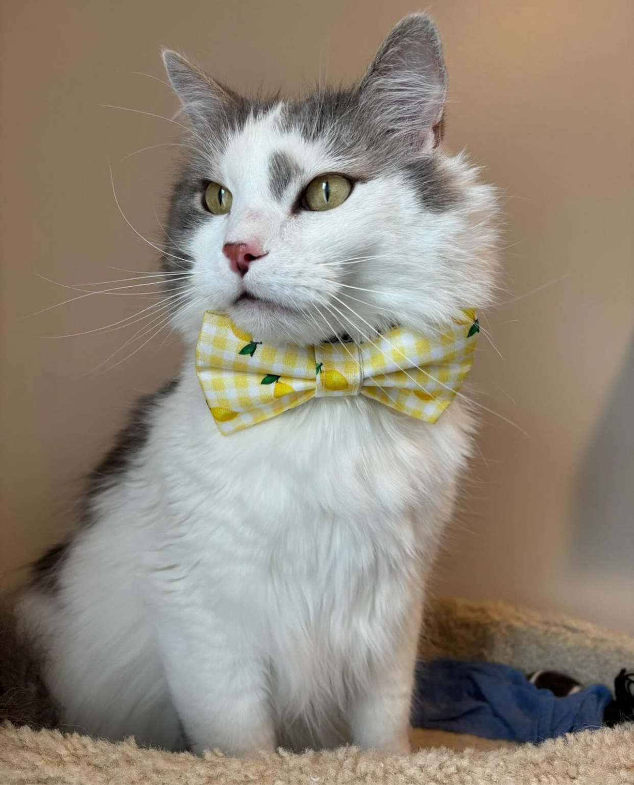 **do not leave pets unattended while wearing a bowtie. When putting a bowtie on collar make sure you are still able to fit at least two fingers under the collar