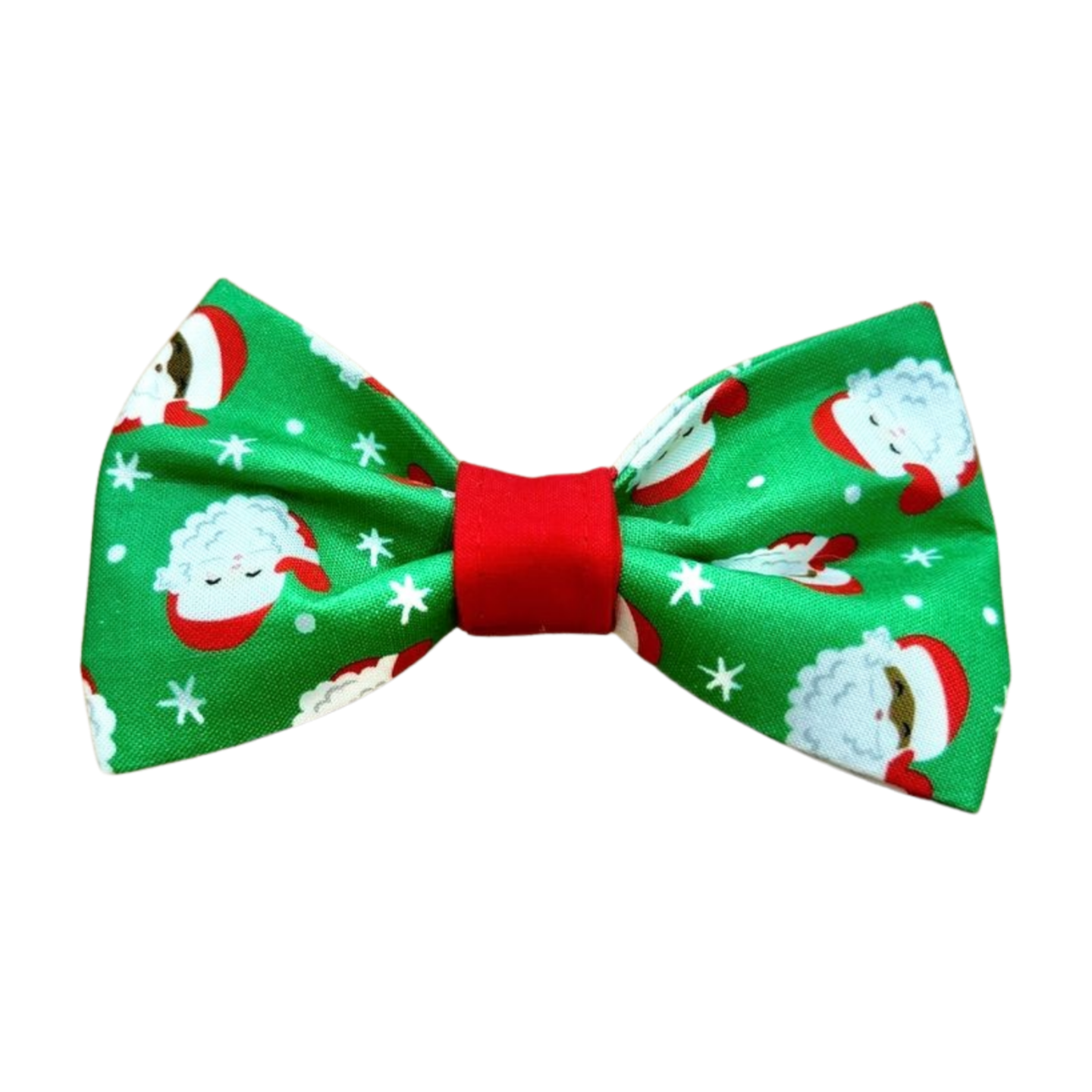 -Each bow tie has two sewn on hook and loop (double sided) Velcro pieces on each side on the back. Having Velcro on each side prevents the bow tie from drooping. Hot glue is used on bow