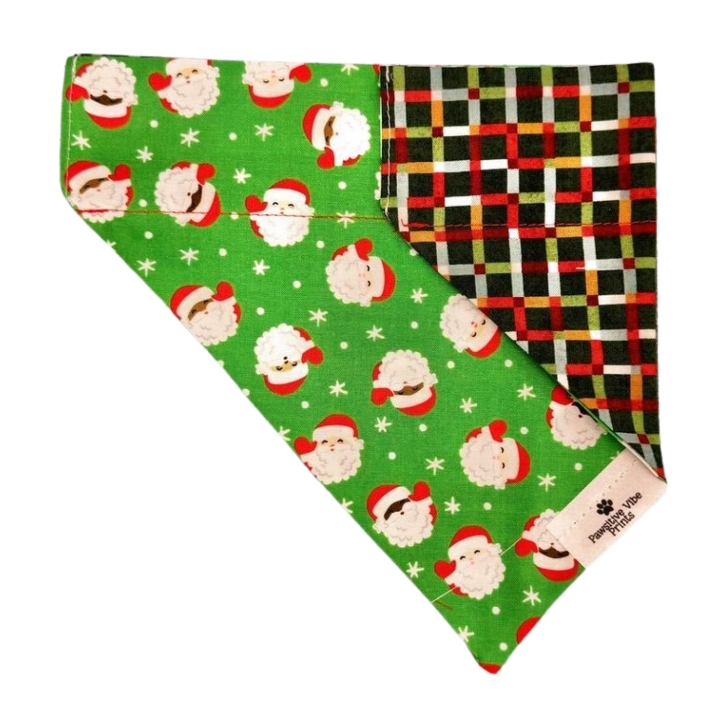 Over the collar design makes it so the bandana stays on as long as the collar is on. This reversible bandana is pawfect for your pets wardrobe!