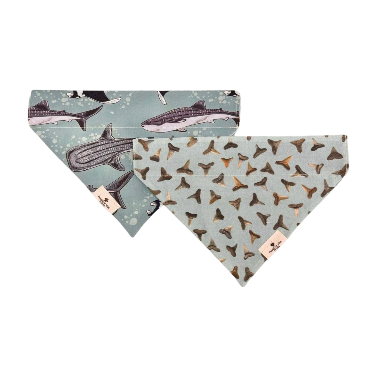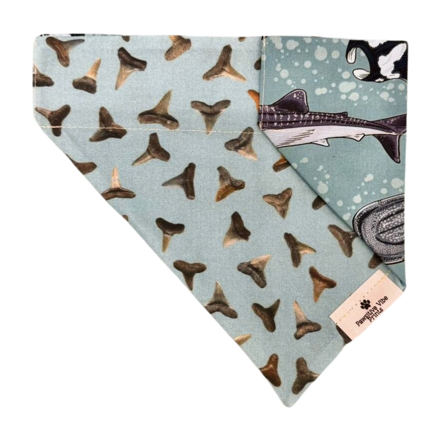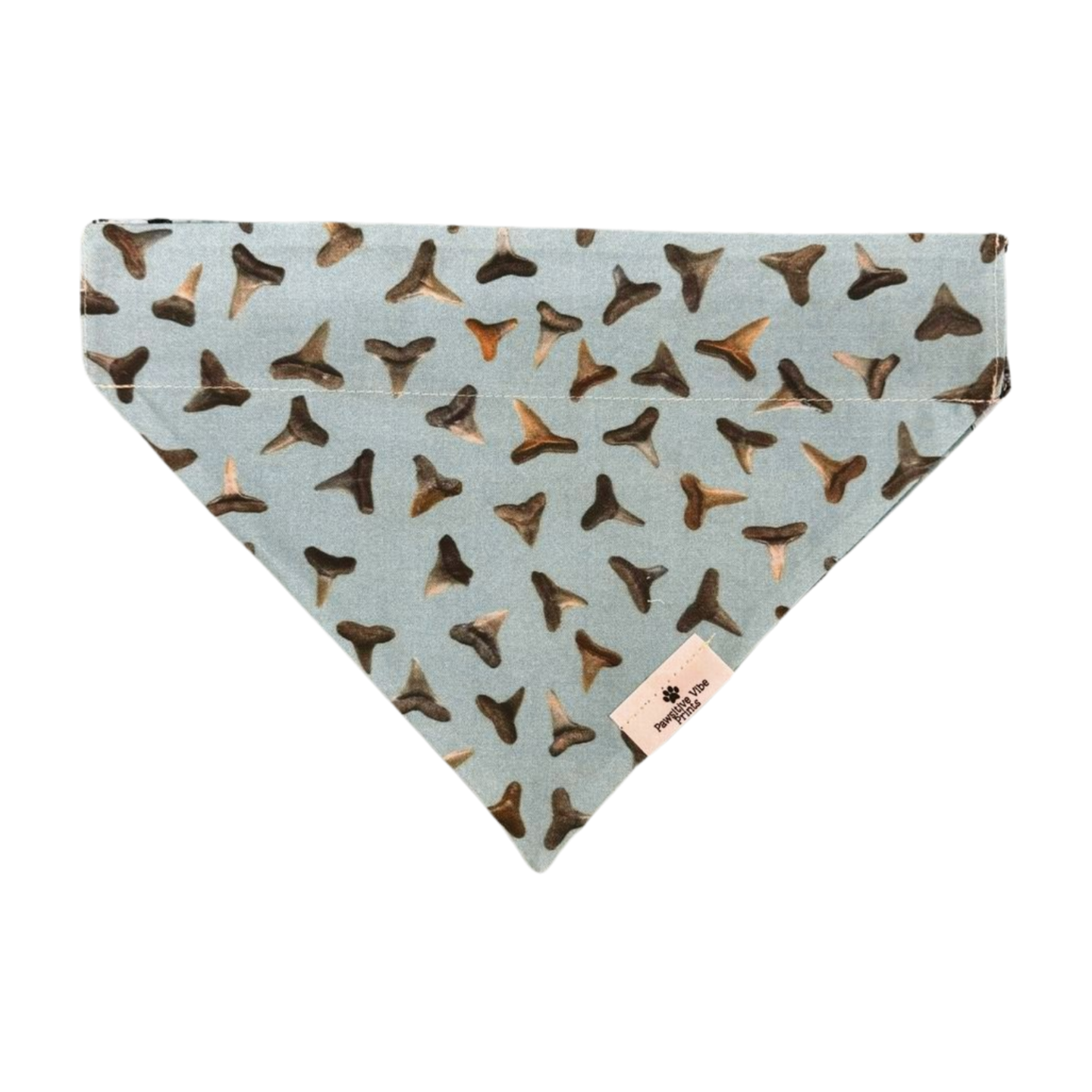Over the collar design makes it so the bandana stays on as long as the collar is on. This bandana has two prints for the price of one!