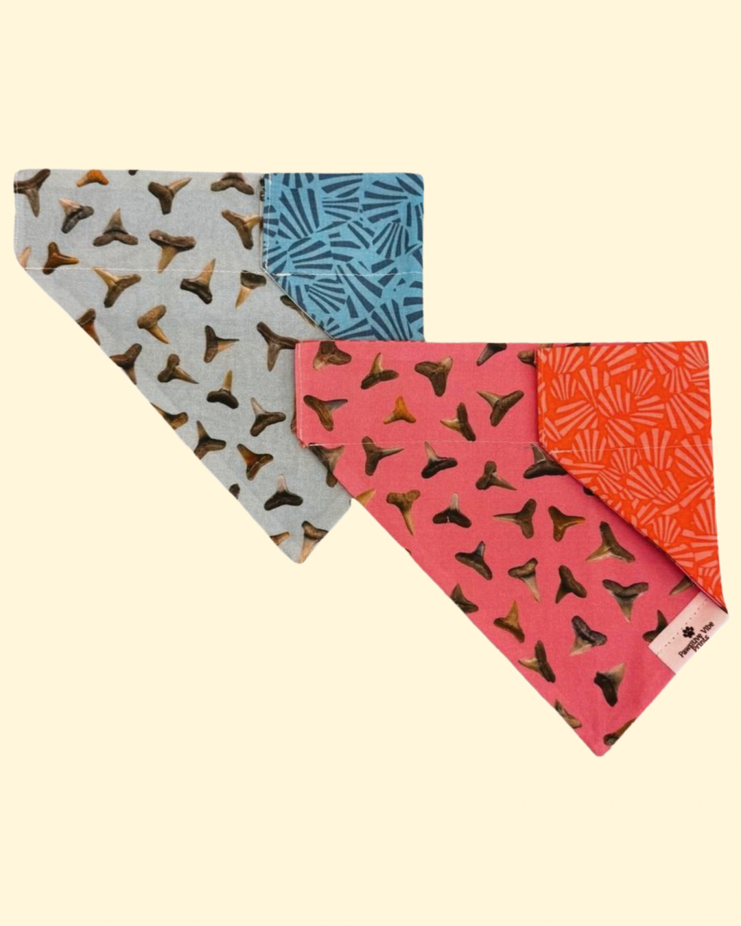 Over the collar design makes it so the bandana stays on as long as the collar is on. This reversible bandana is pawfect for your pets wardrobe!