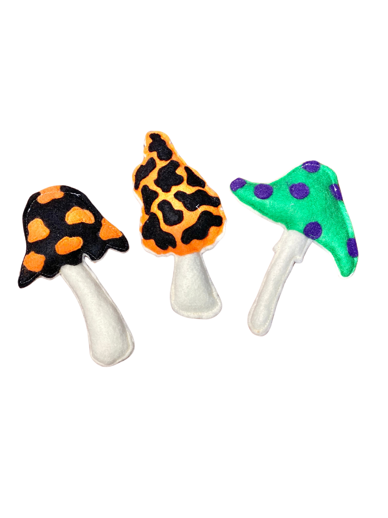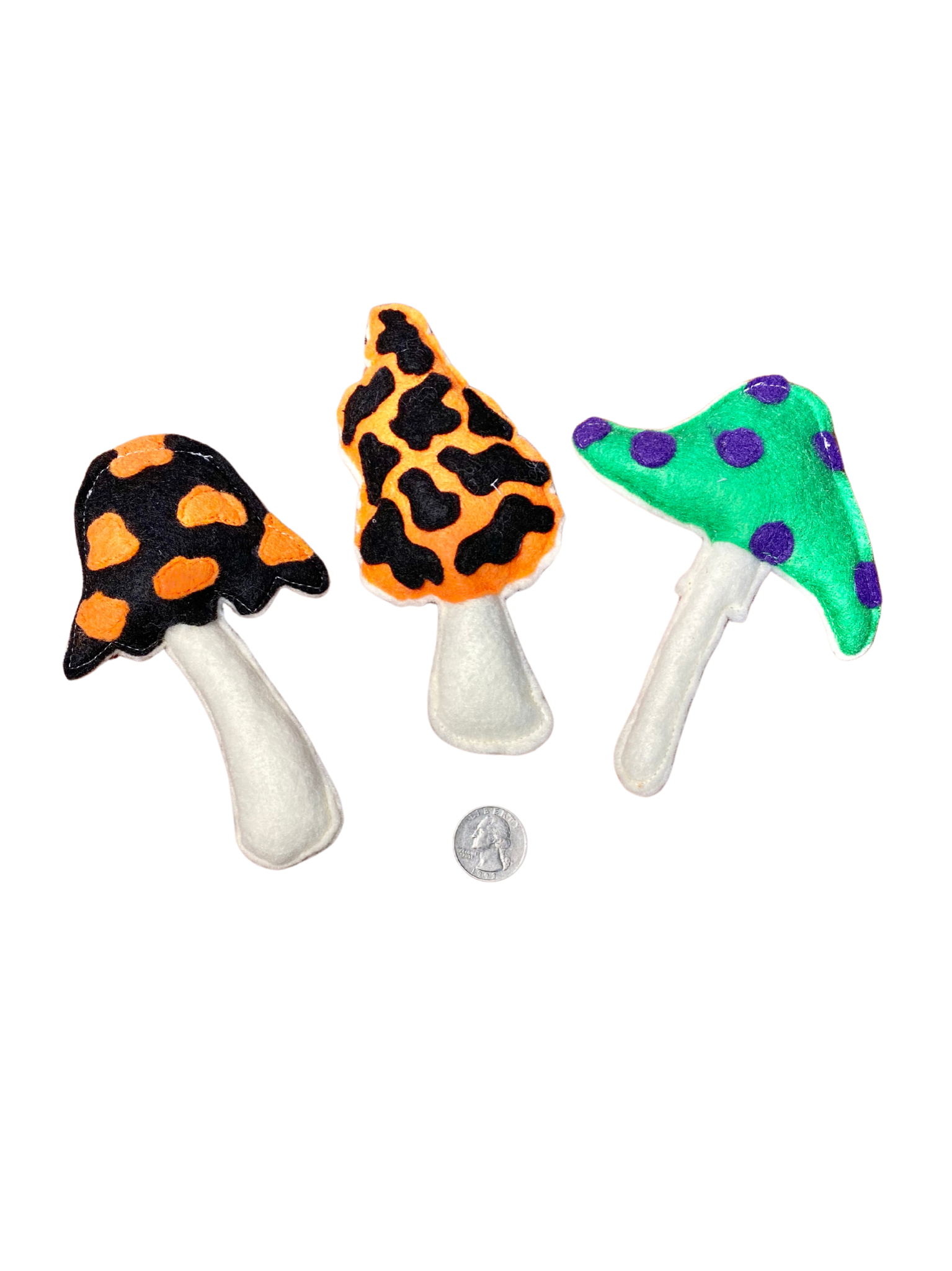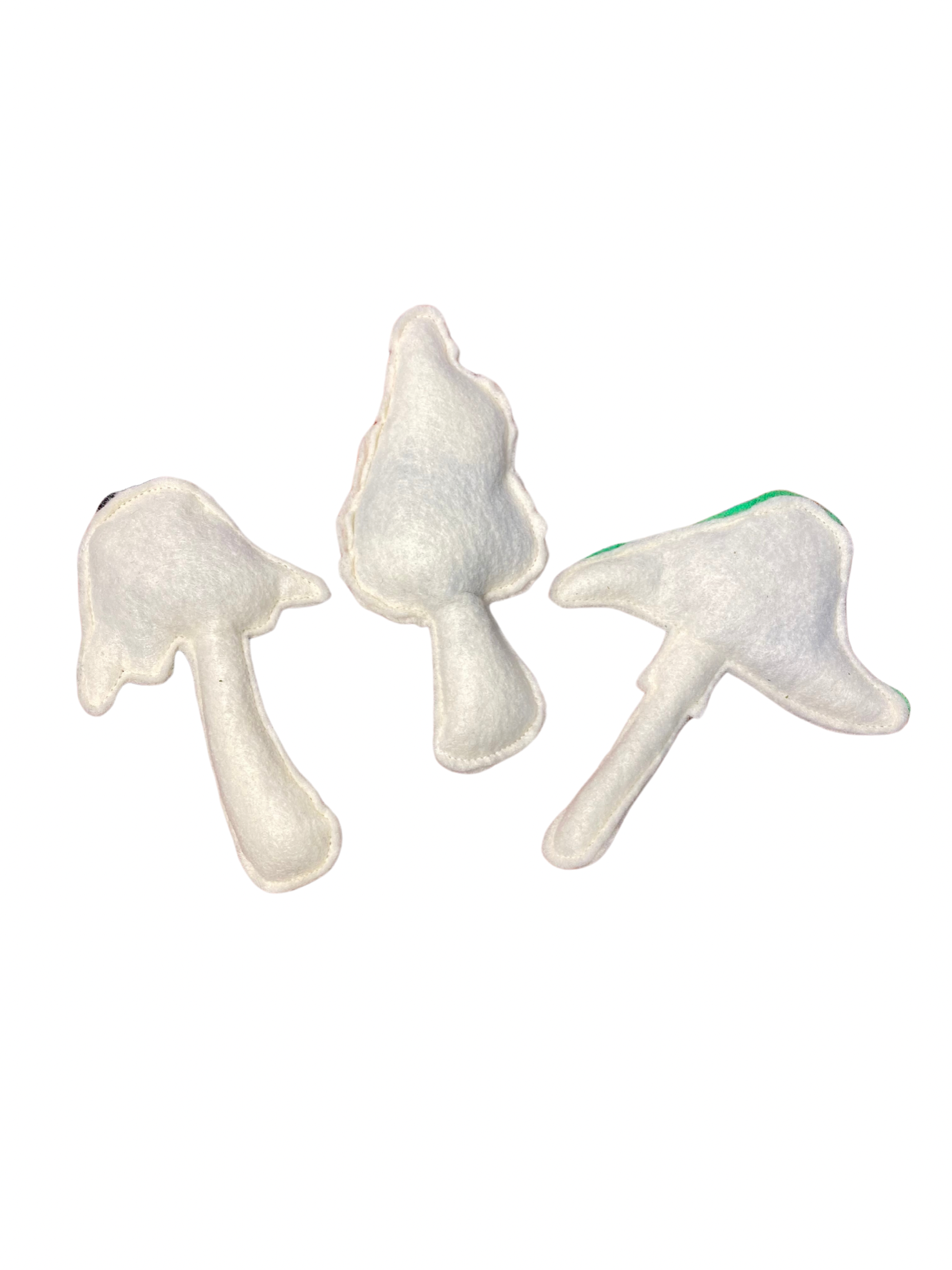 • made from felt, and filled with polyfil stuffing and catnip/ silver-vine mix