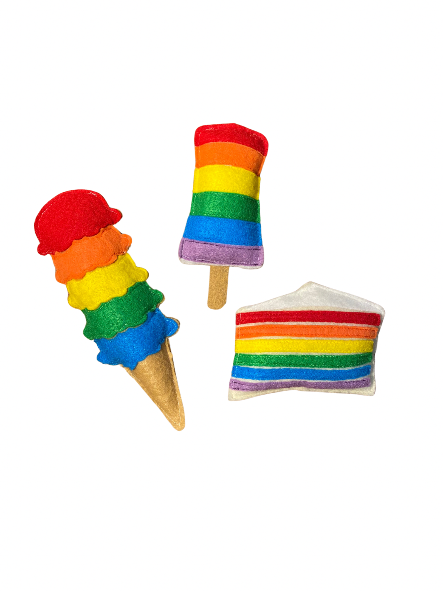 Note**Since these are handmade, there may be small variations in stitching and patterns, but all toys are made from the same kind of felt and thread.