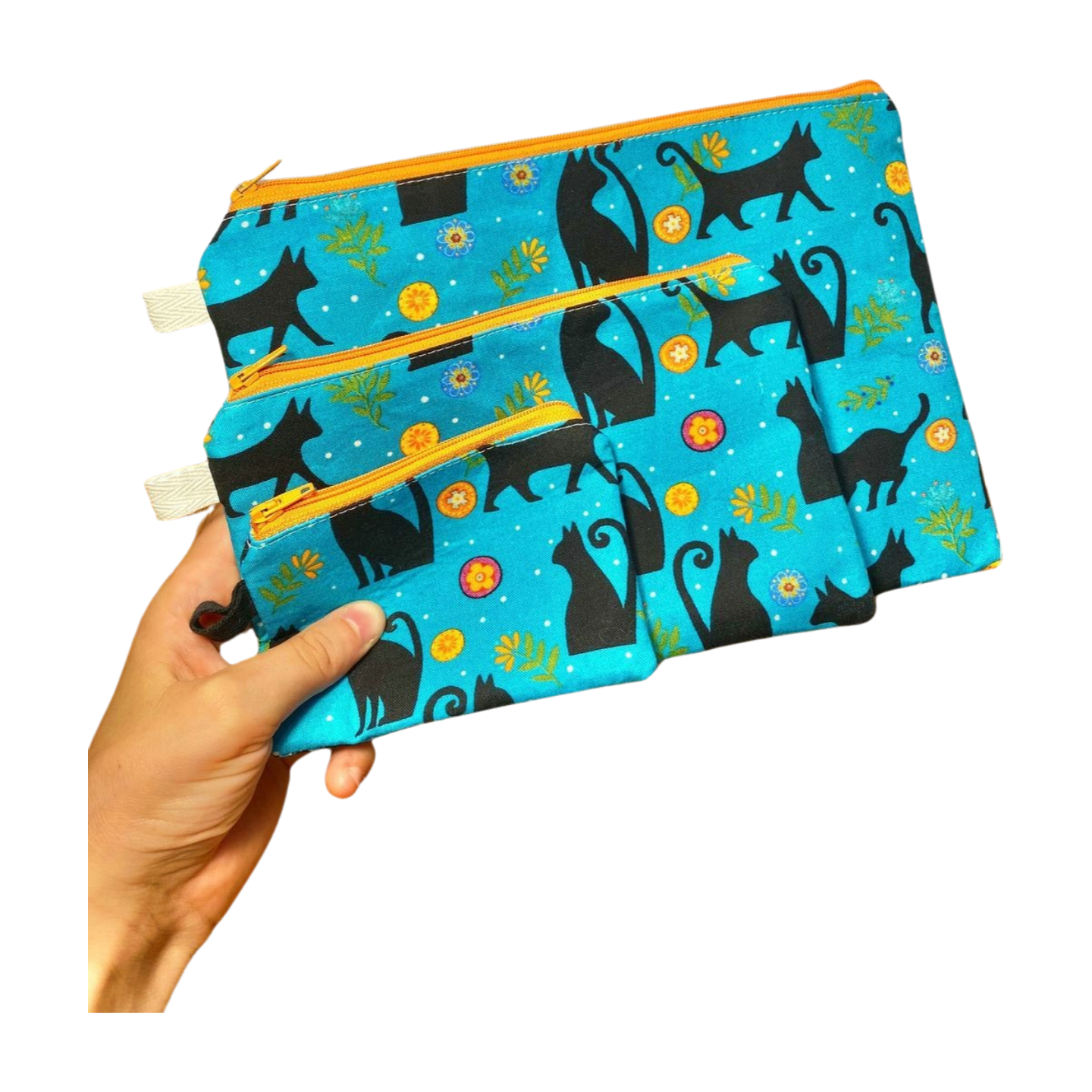 these cute zipper pouches are pawfect for any pet lover! Each pouch is made from high quality cotton fabric with interfacing for a stiff but soft outside. Each pouch is lined with a coordinating cotton fabric.